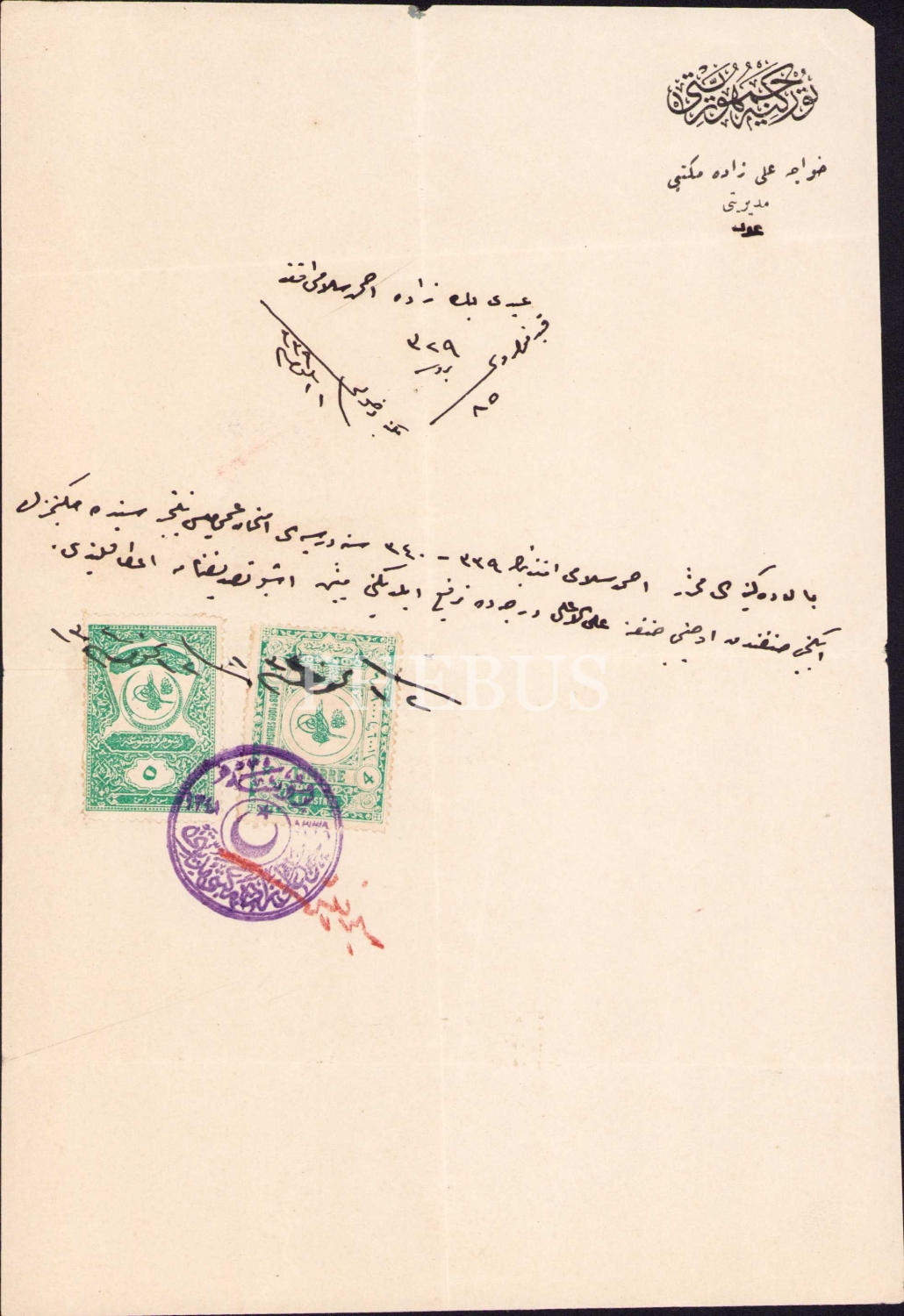 Osmanlıca TC Hevace [Hoca] Ali Zade Mektebi Müdüriyeti antetli 1340 tarihli doküman, 16x24 cm