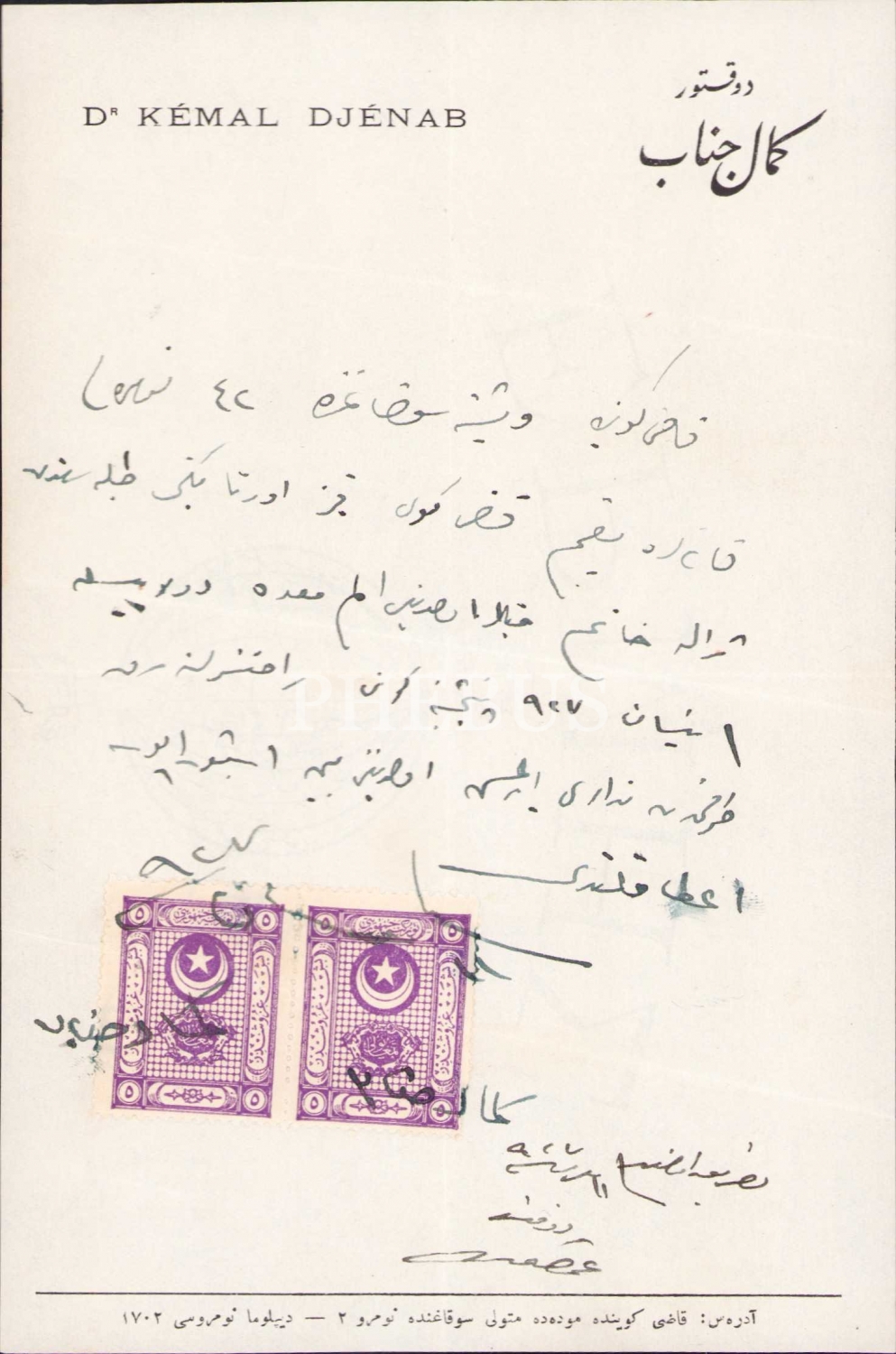 Osmanlıca Fransızca Dotor Kemal Cenab antetli, 1927 tarihli talebe için yazılmış rapor, 12x18 cm