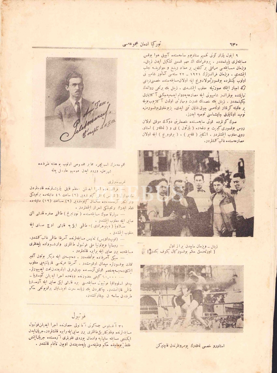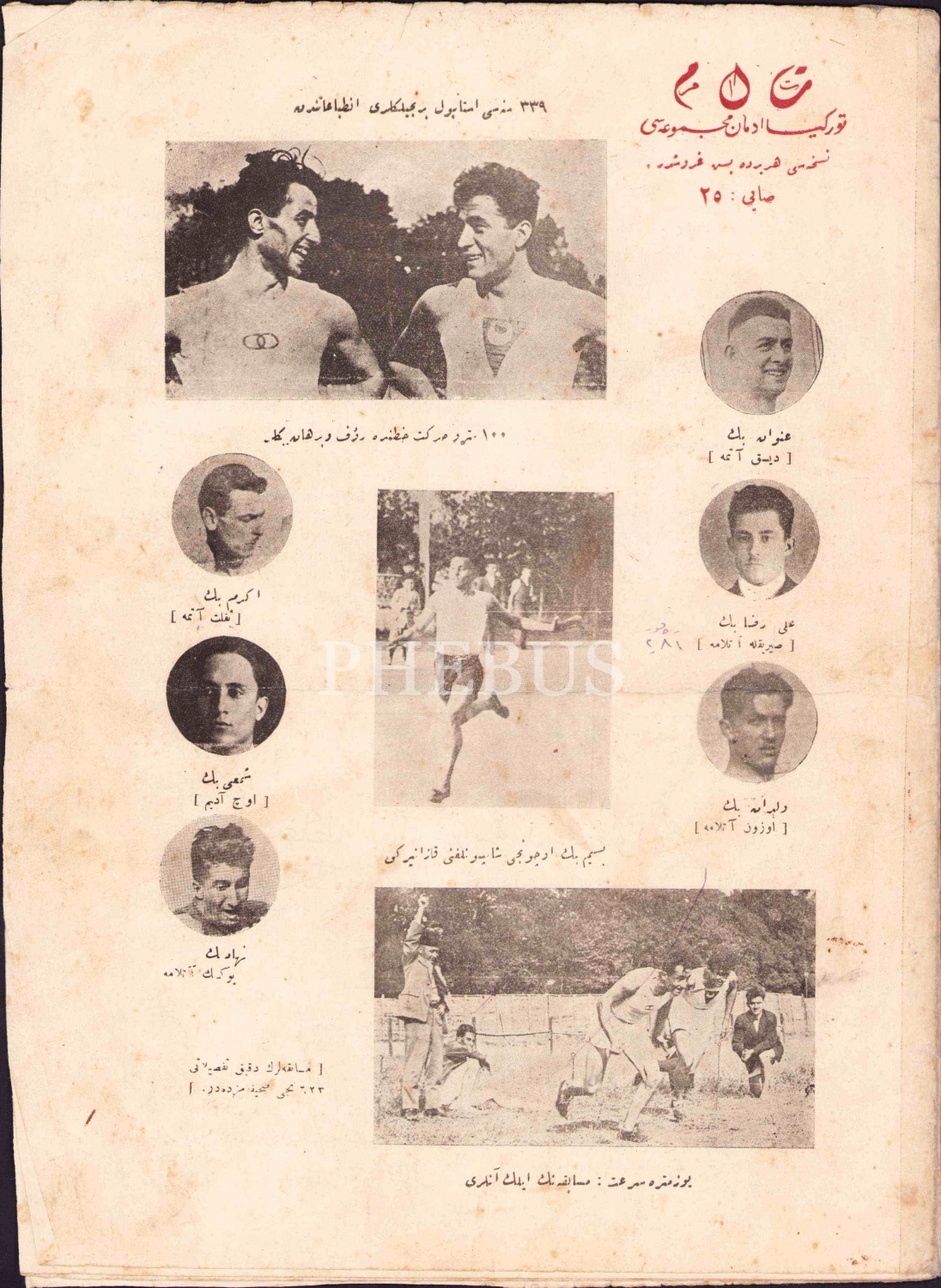 Osmanlıca Türkiye İdman Mecmuası, " 1339 Senesi İstanbul Birincilikleri İntibalarından", 16 sayfa, 22x30 cm