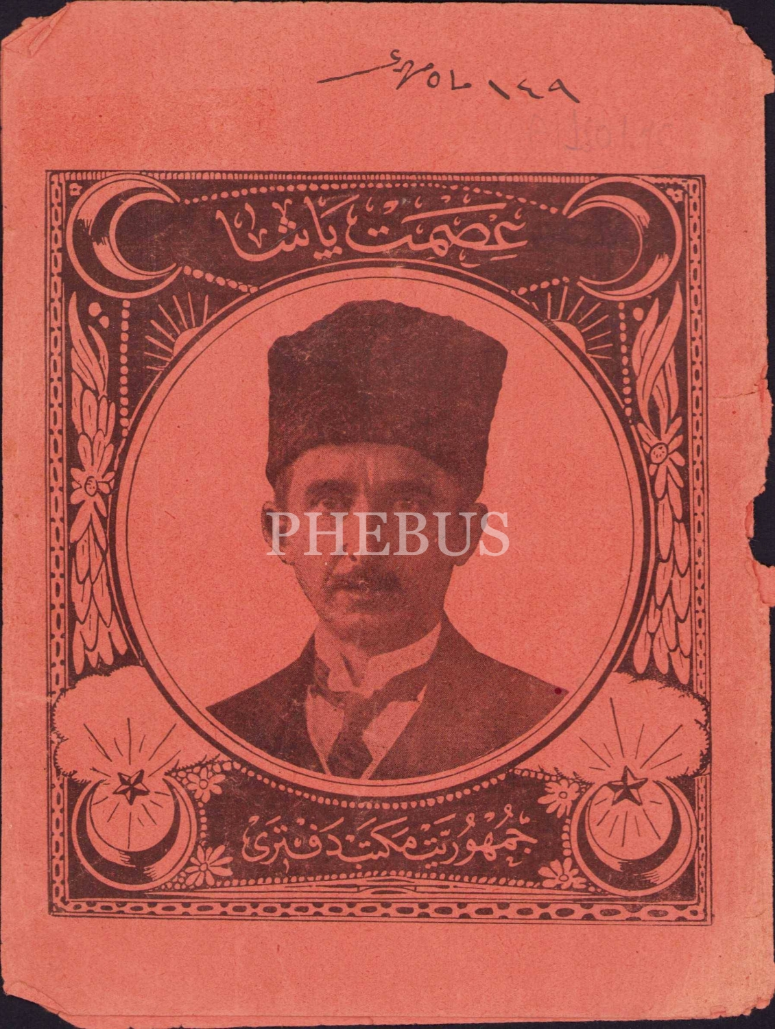 Osmanlıca İsmet Paşa Cumhuriyet Mehtep Defteri kapağı, sırtı haliyle, 15x20 cm
