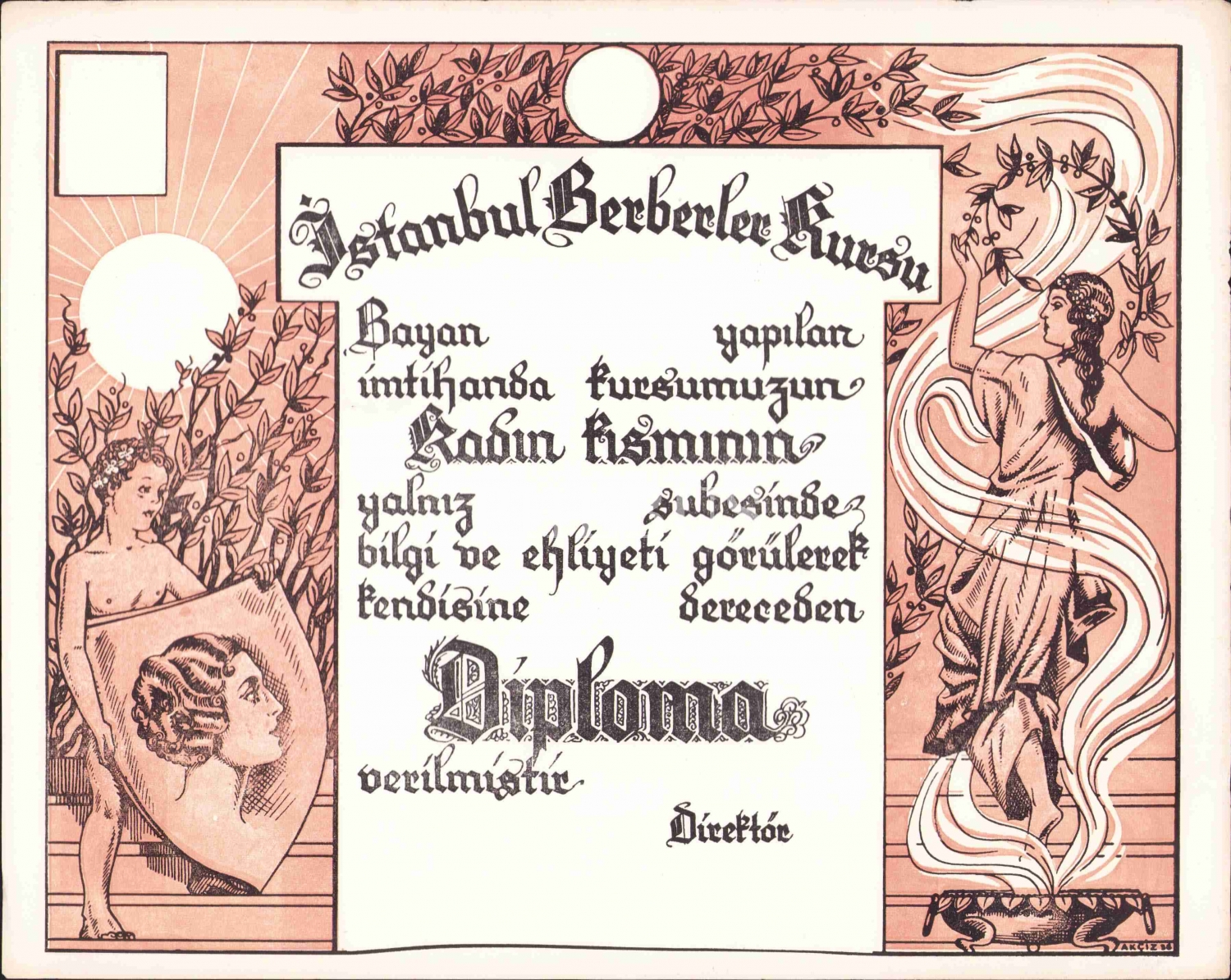 İstanbul Berberler Kursu diploma, 30x24 cm