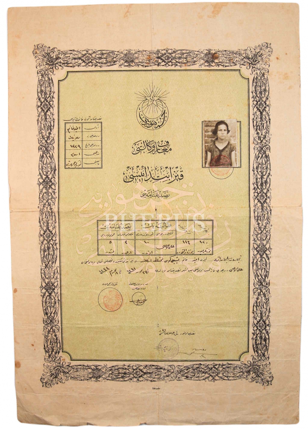 Osmanlıca tasdikname, Yeşilköy Muhtelit Erkek ve Kız İbtidaisi, 1344, yıpranmış, 32x50 cm