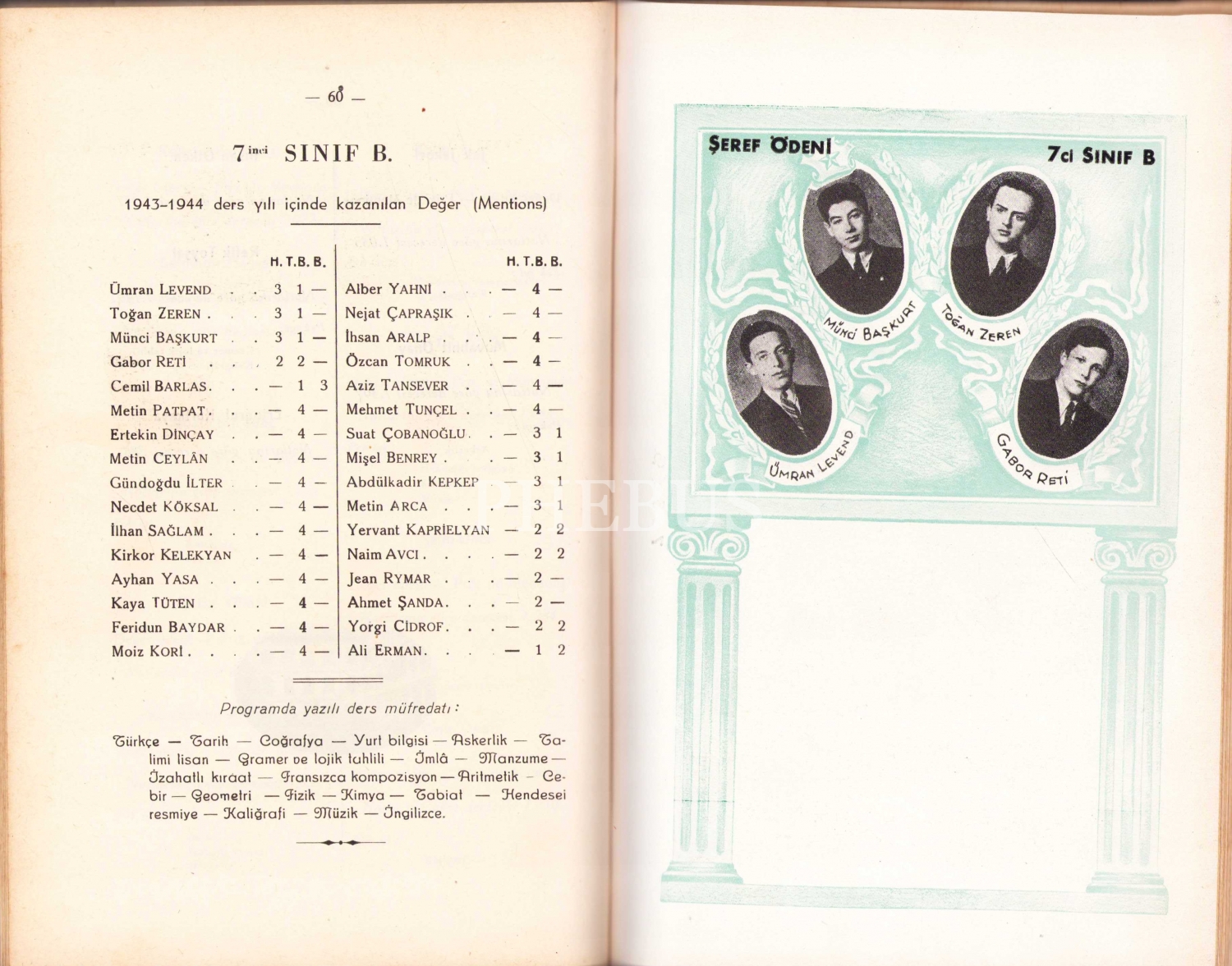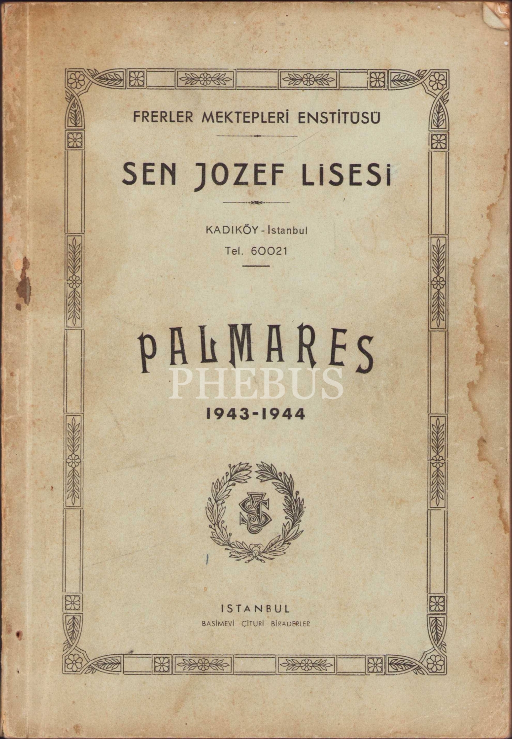 Frerler Mektepleri Enstitüsü Sen Jozef Lisesi Palmares 1943 -44, Çituri Biraderler Basımevi, İstanbul, su görmüş, 112 sayfa, 16x23 cm