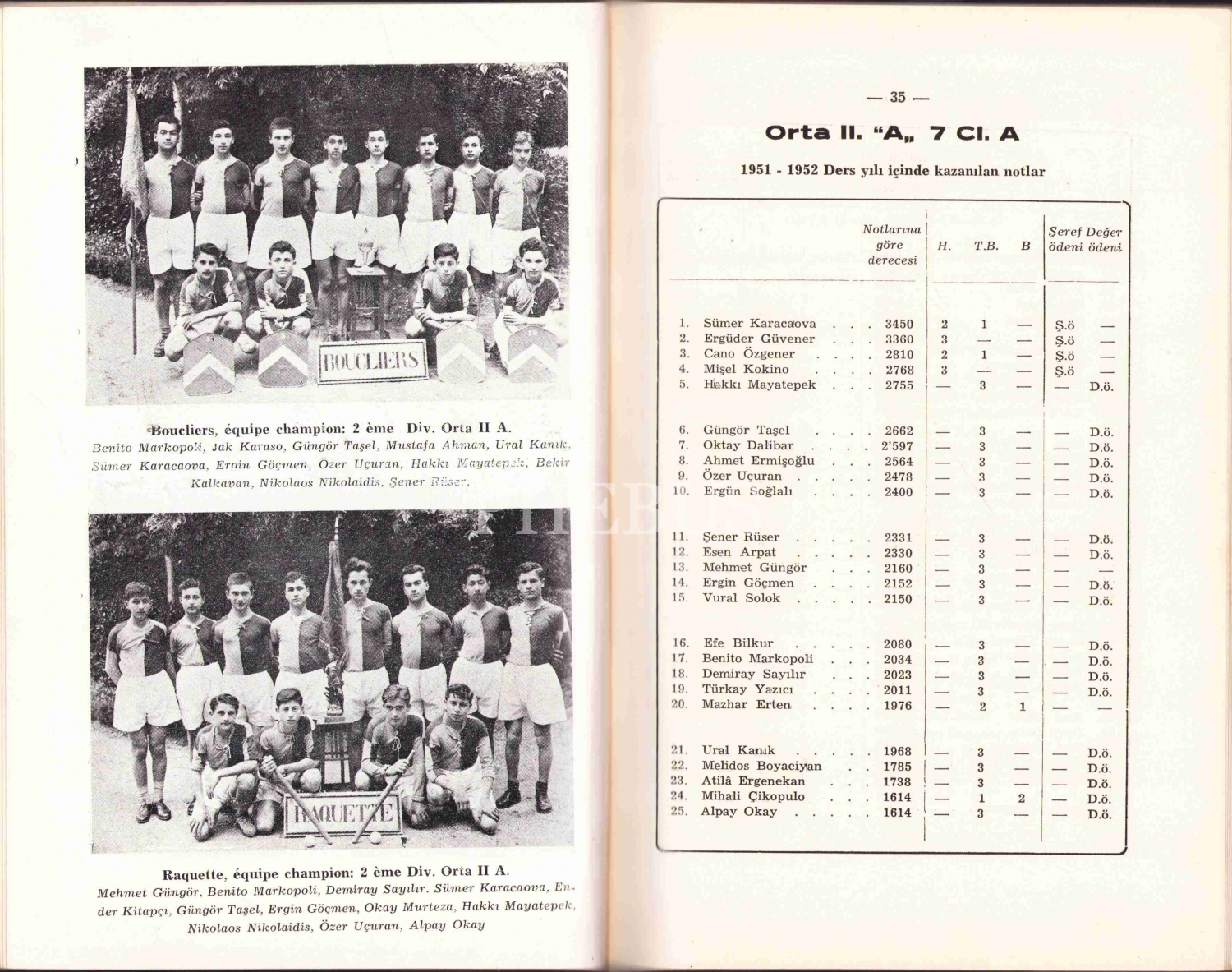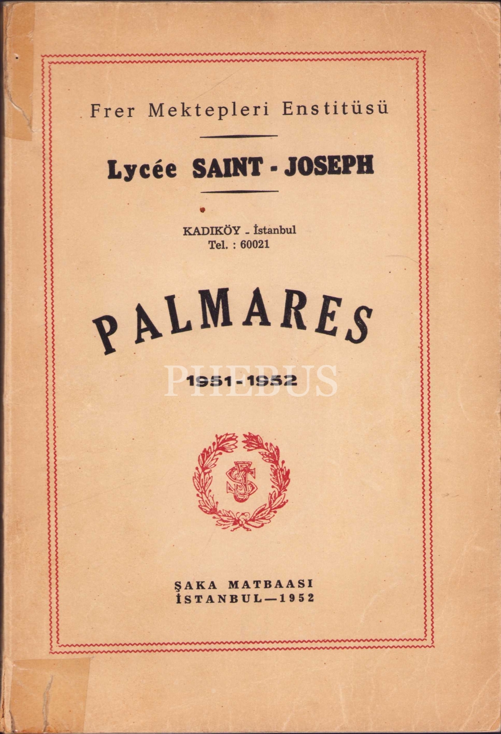 Frerler Mektepleri Enstitüsü Sen Jozef Lisesi Palmares 1951 - 52, Çituri Biraderler Basımevi, İstanbul, sırtı haliyle, 80 sayfa, 16x23 cm