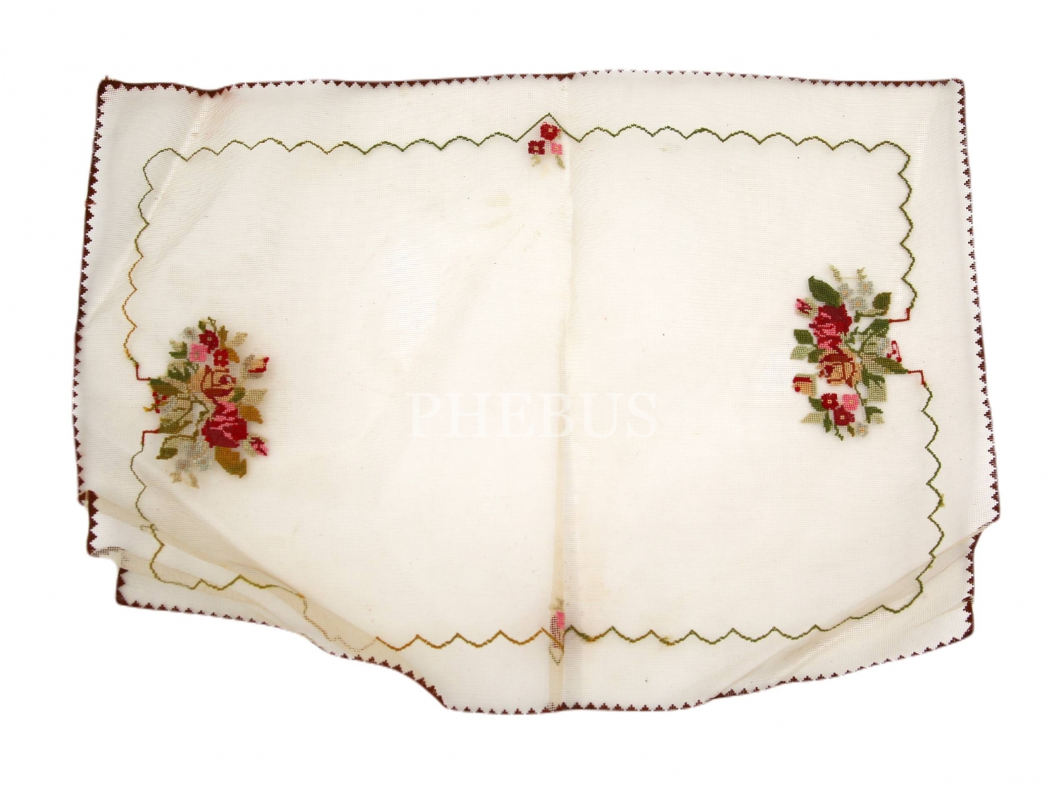 Osmanlı Dönemi, Elişi, Kanaviçe Çiçek Motifli Sehpa Örtüsü, 28x20 cm