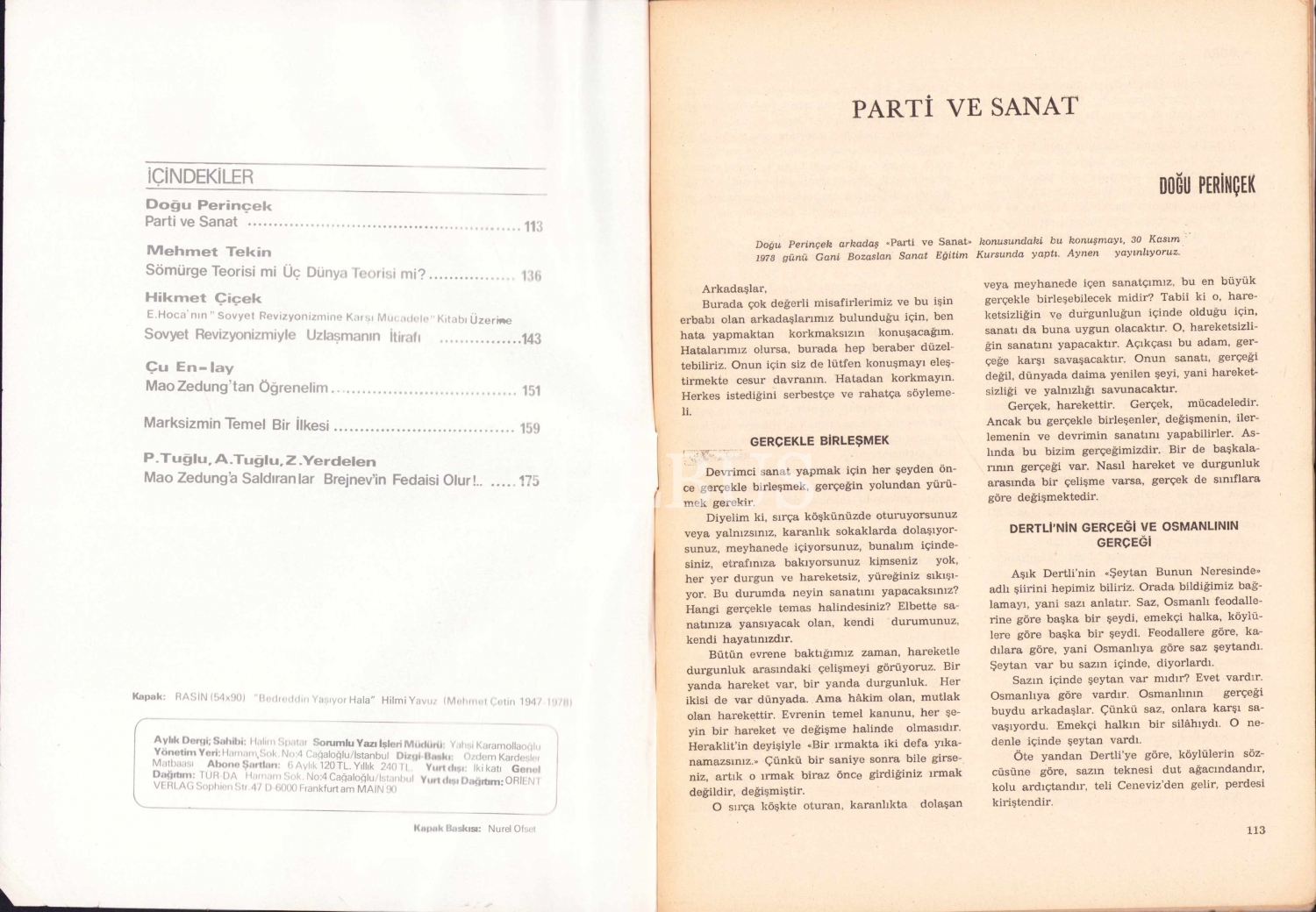 Bora dergisi, 3 Ocak 1979, Bu sayıda Doğu Perinçek Parti ve Sanat, 176 sayfa, 20x28 cm