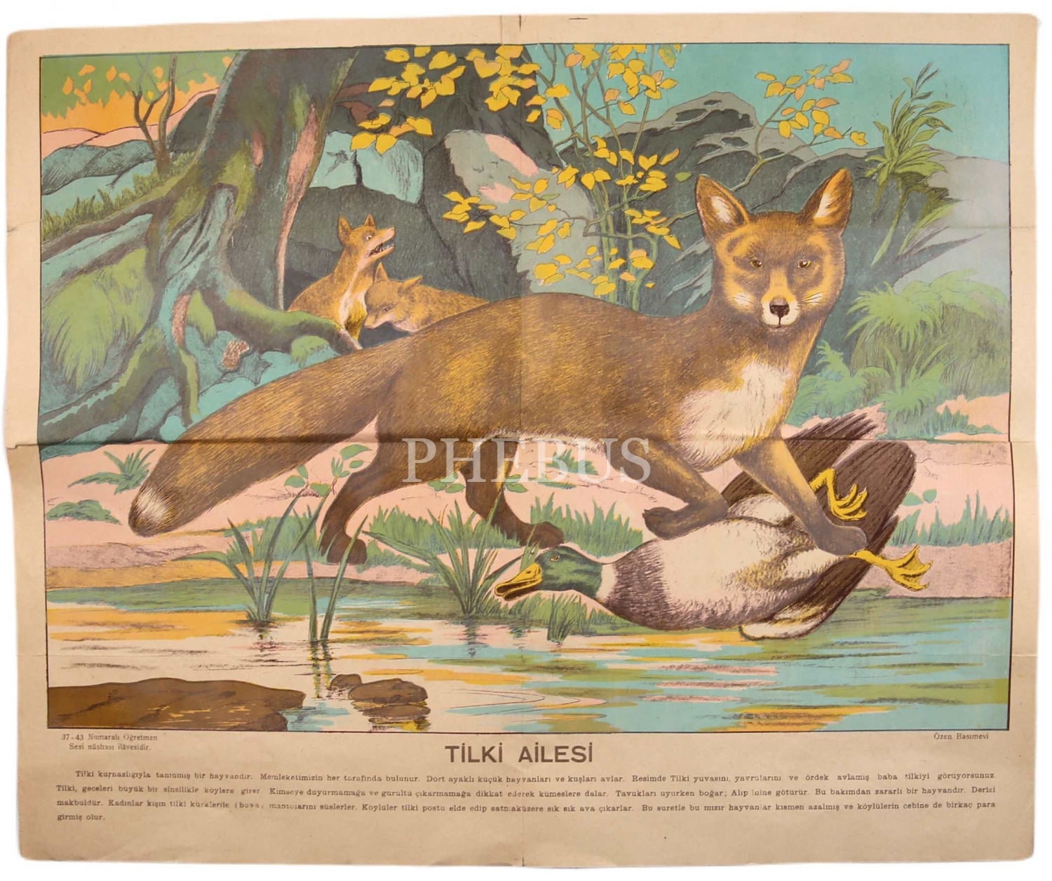 Lito-ofset baskı eğitim afişi, tilki ailesi, Özen Basımevi, 46x40 cm
