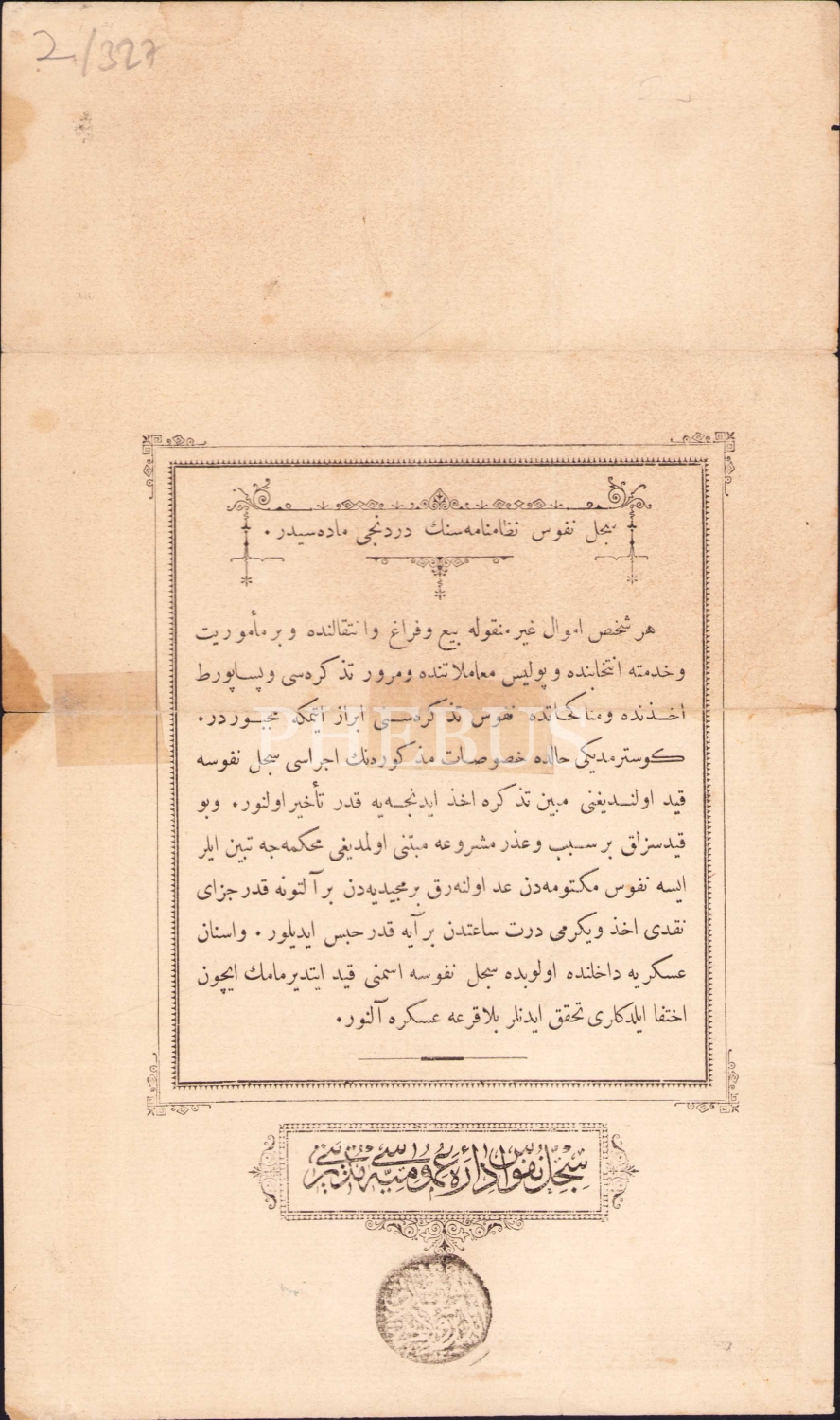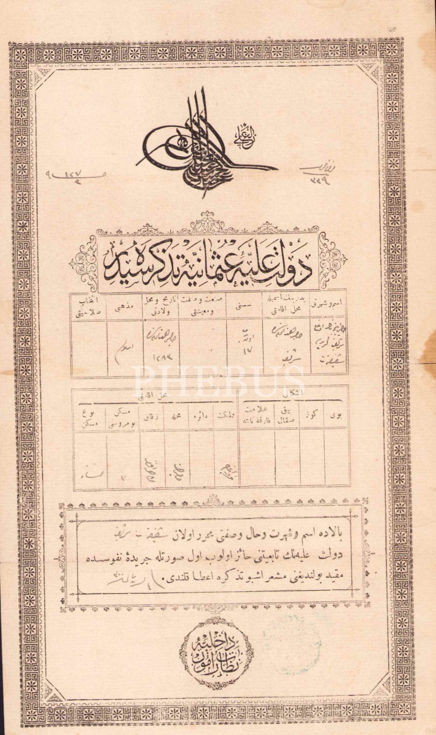 Şerif Bey'e ait 1330 tarihli Osmanlıca nüfus tezkiresi, tamirli, 16x29 cm