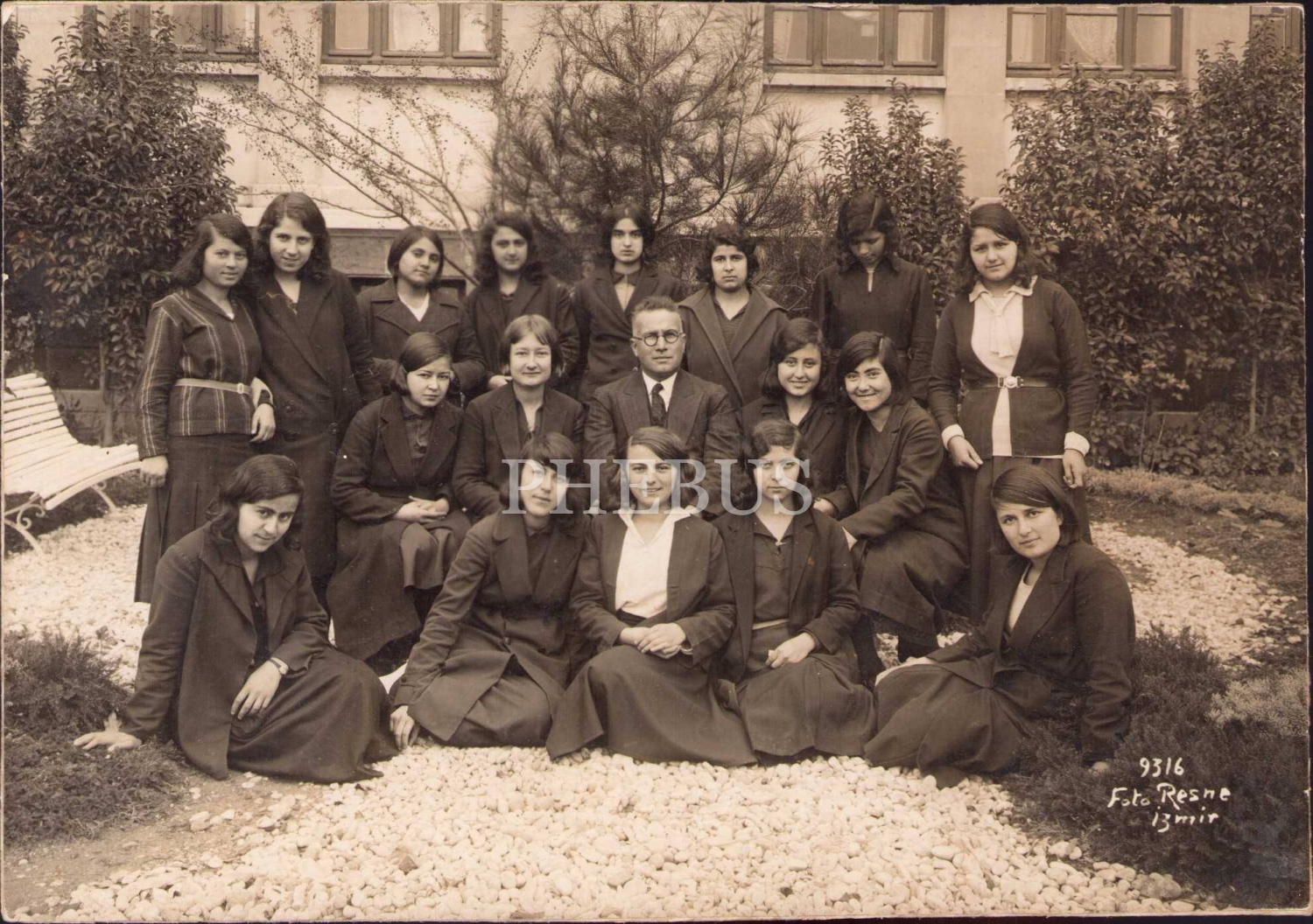 Foto Resne İzmir, kız talebeler ve muallim, 16x11 cm