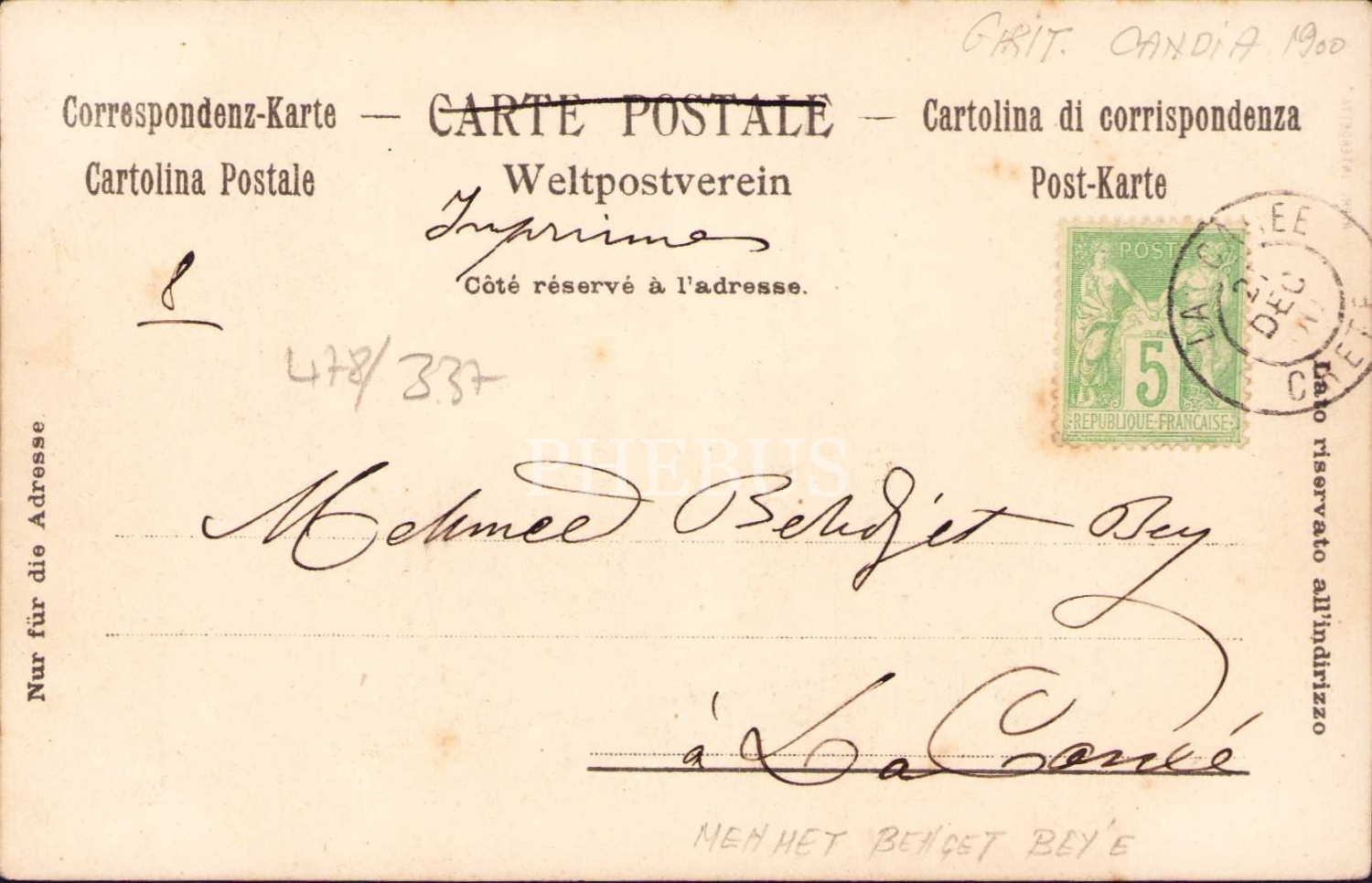 Parce Sepulto, Osmanlı Dönemi Girit-Kandiye damgalı, postadan geçmiş