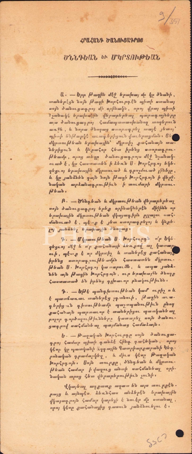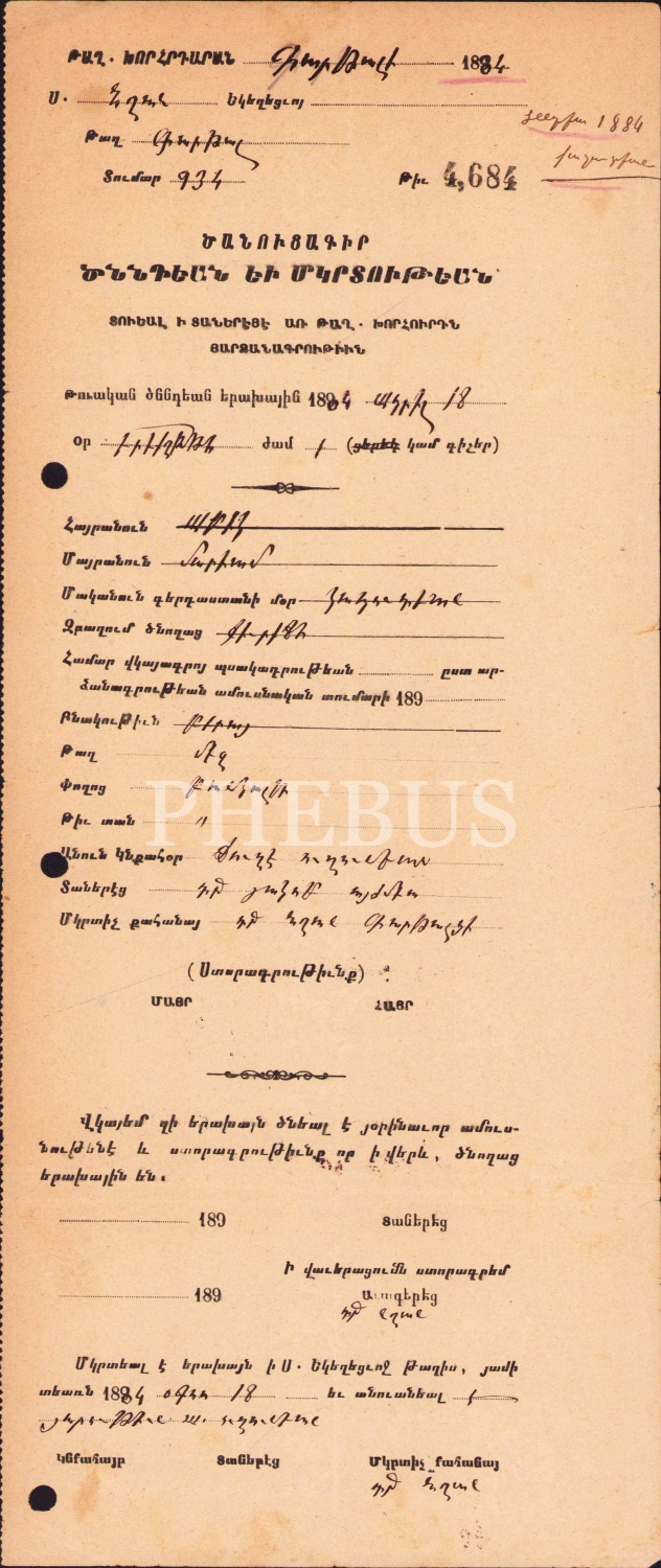 Ermenice doküman, 1884, 13x34 cm