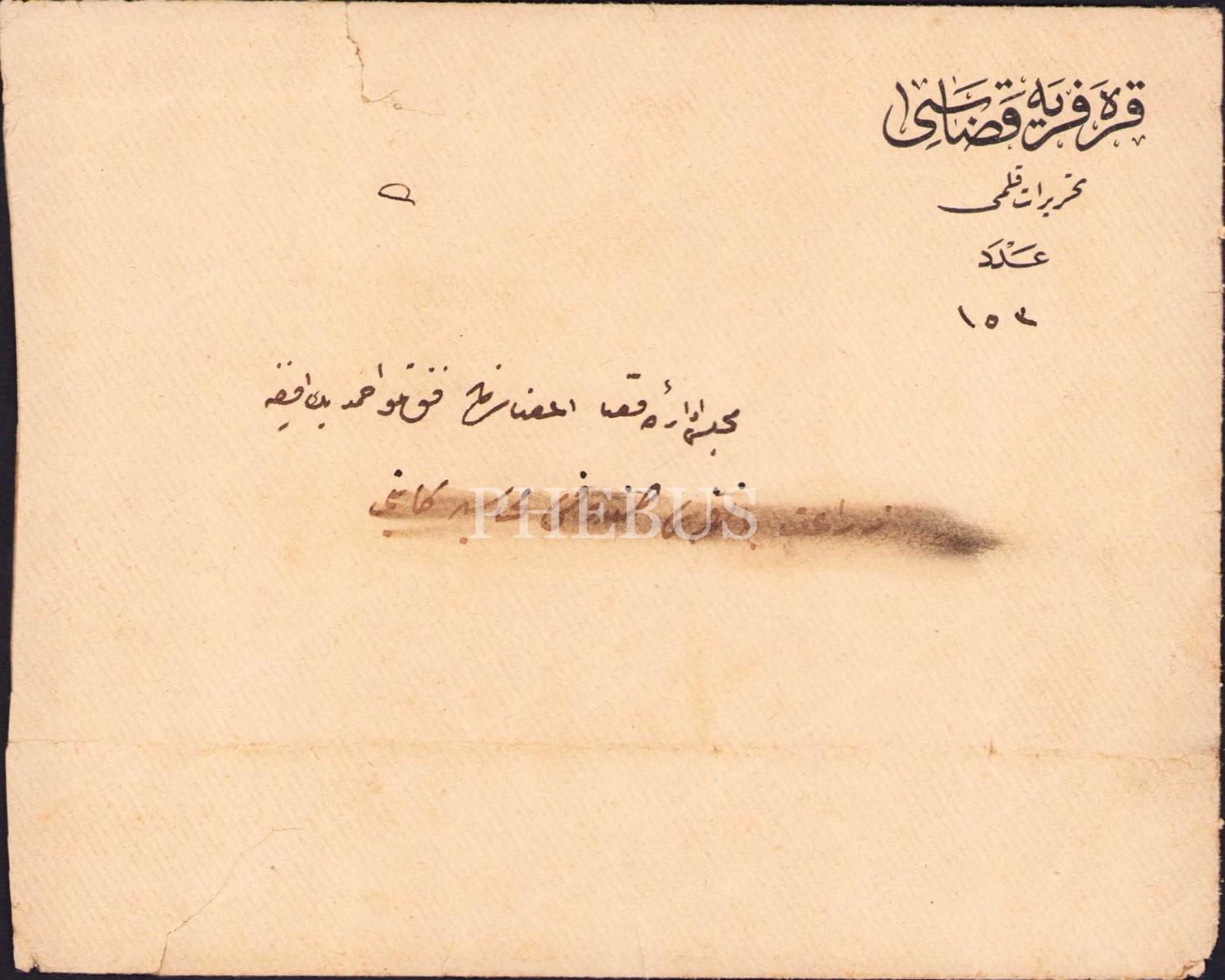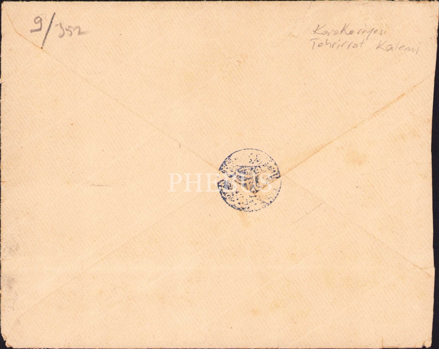 Osmanlıca Kara Kariye Kazası Tahrirat Kalemi antetli Meclis İdare Azası Ahmed Beyefendiye gönderilmiş zarf, haliyle, 16x13 cm