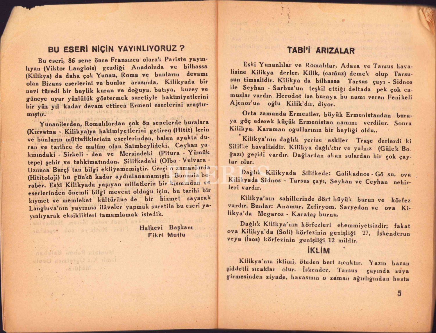 Mersin Halkevi Yayınlarından: Eski Kilikya, Yazan: V. Langlois, Çeviren: M. Rahmi Balaban, Yenimersin Basımevi - Mersin 1947, 77 sayfa, 14x19 cm