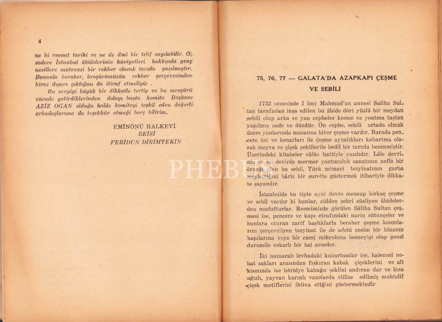Eminönü Halkevi Tarih ve Müze Şubesi Neşriyatından Sayı: 2 - Halkevinin Tarihi ve Mimari Anıdlara Ait İkinci Resim Sergisi Broşürü, Rıza Koşkun Matbaası - İstanbul 1944, 69 sayfa, 15x20 cm