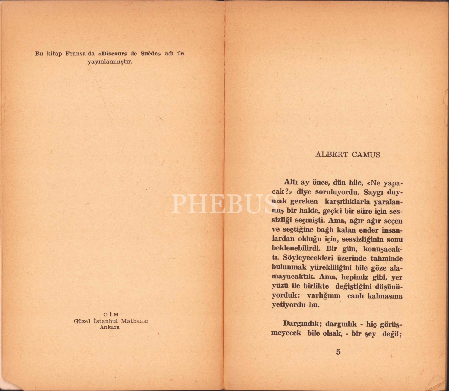 Albert Camus Sanatçı ve Çağı, Yıldırım Kesin, Bilgi Yayınevi, Birinci Baskı: Eylül 1965, 57 sayfa, 11x19 cm