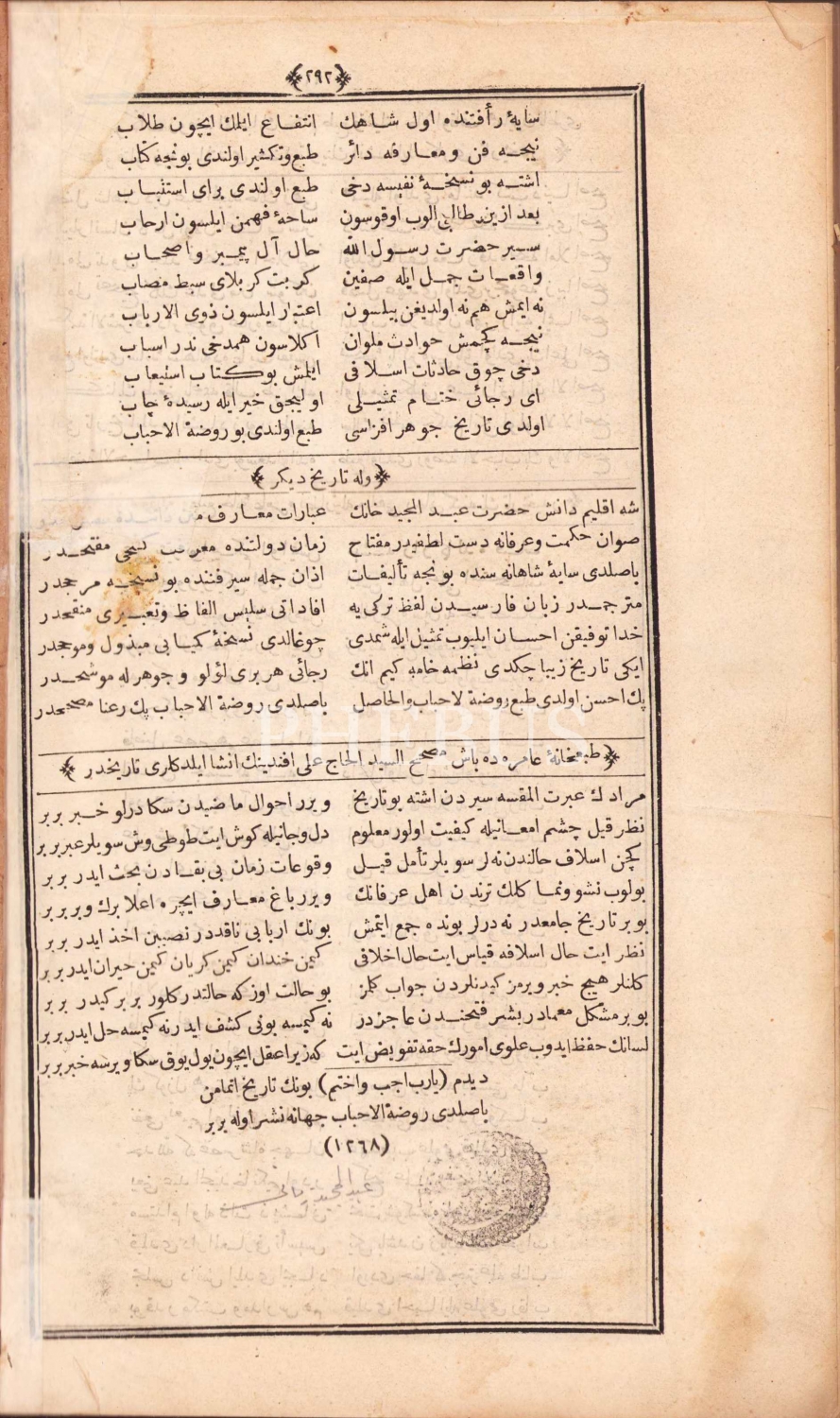 Ravzatul Ahbab, Ataullah b. Fazlullah il-Hüseynî Eş-Şirazî [Cemal Hüseynî]- 3. cilt, Matbaa-i Âmire, 1268, 292 sayfa, 17x27 cm