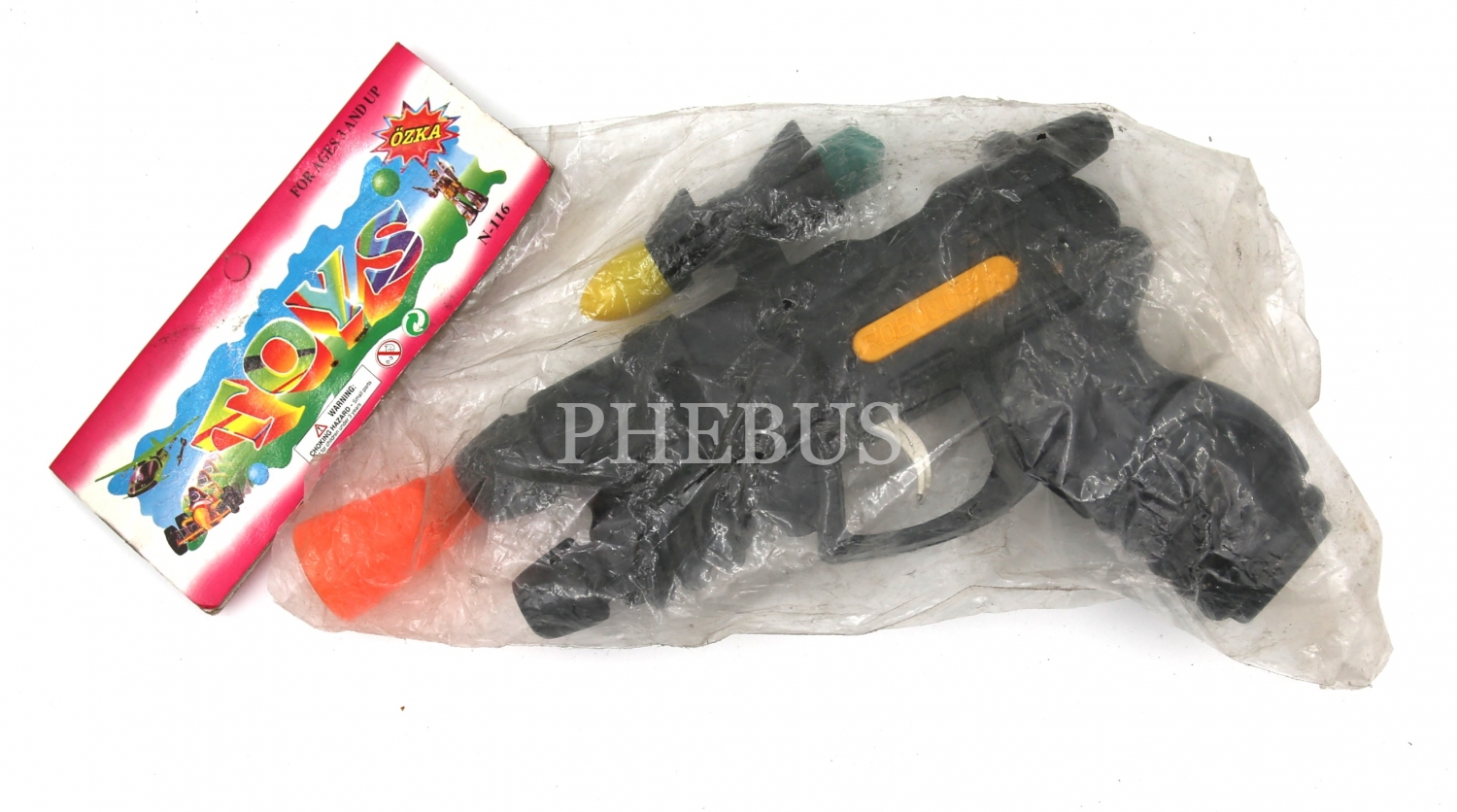 Türk malı, Özka marka, ambalajında plastik oyuncak tabanca, 21x15 cm
