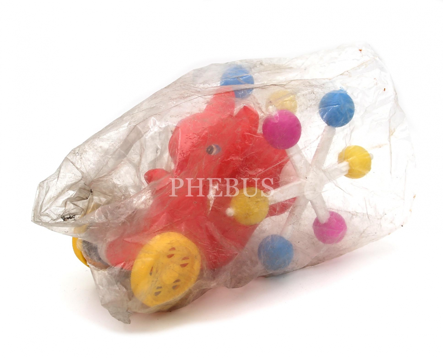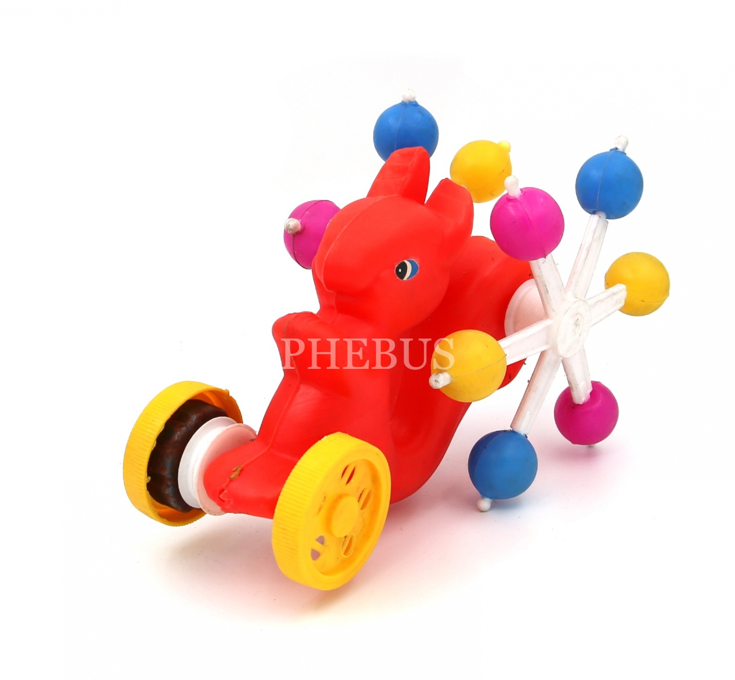 Türk malı, şişme plastik, zilli, tekerlekli oyuncak sincap, 25x14x9 cm