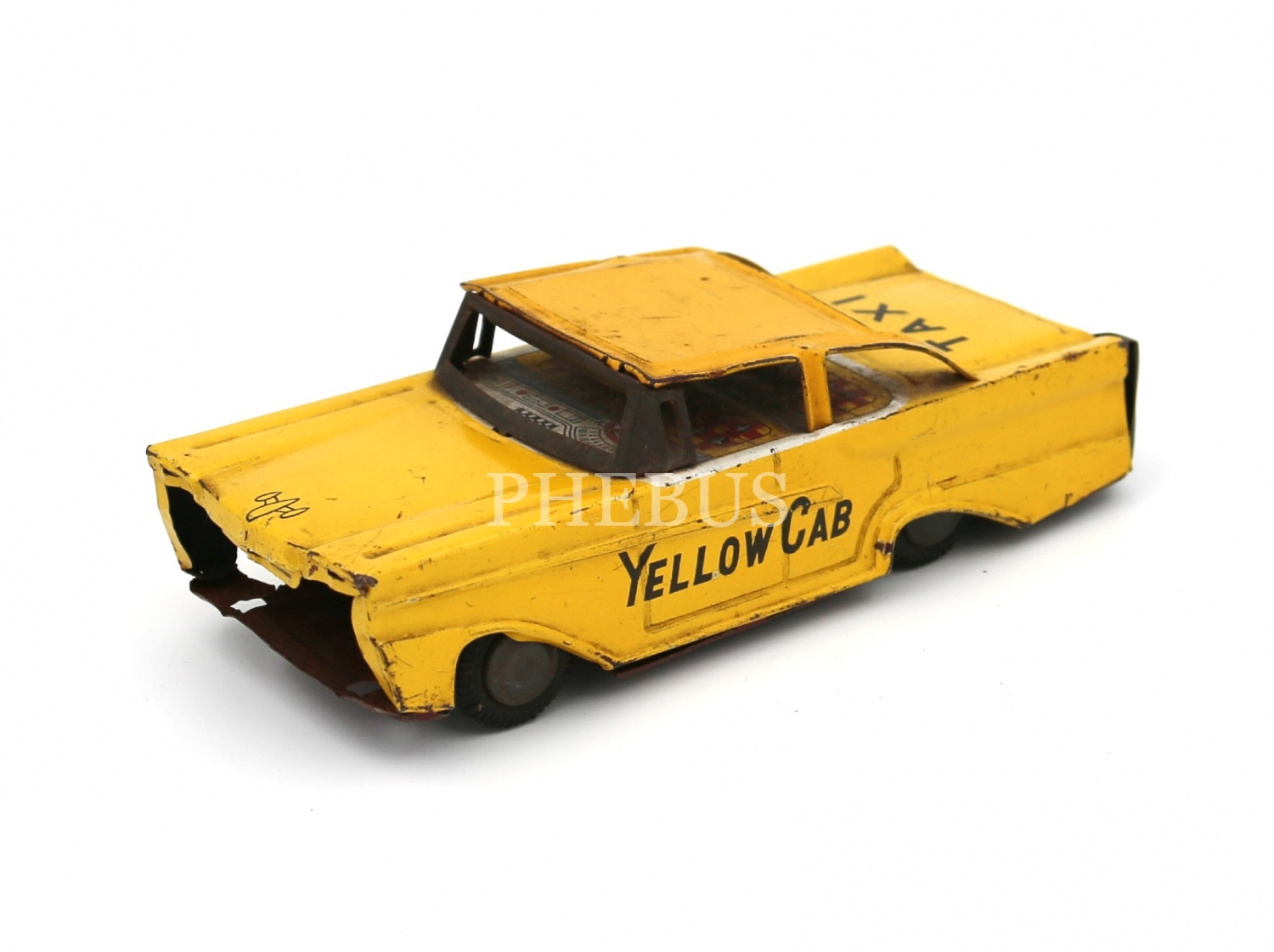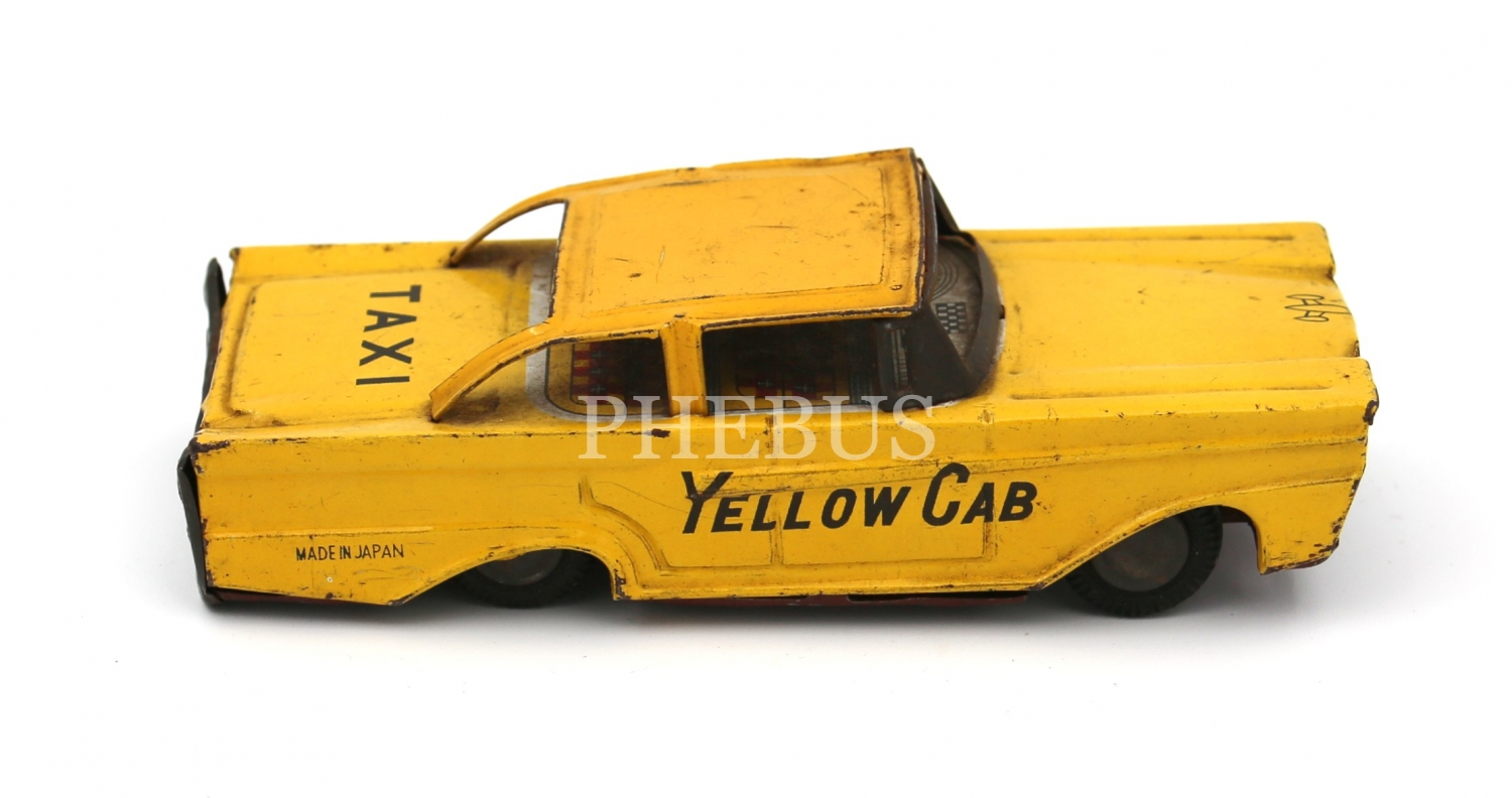 Japon malı, itme-çekme mekanizmalı teneke oyuncak taksi, 5x14x4 cm