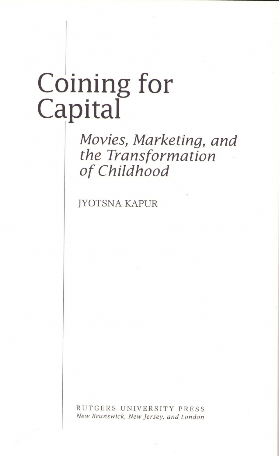 Coining for Capital: Movies, Marketing, and the Transformation of Childhood, Jyotsna Kapur, 2005 New Jersey