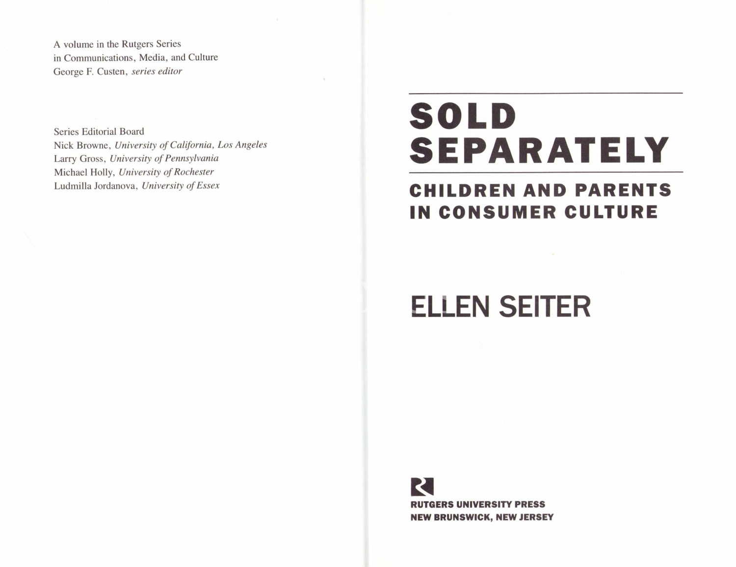 Sold Separately: Children and Parents in Consumer Culture, Ellen Seiter, 1993, New Jersey