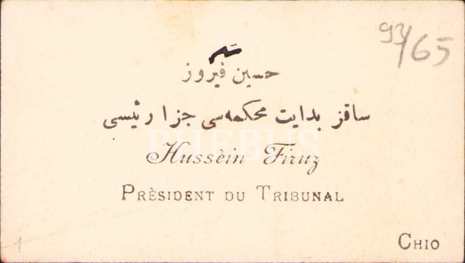Sakız Bidayet Mahkemesi Ceza Reisi Hüseyin Firuz kartvizit, 8x4 cm