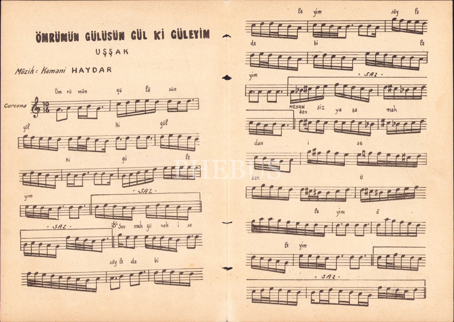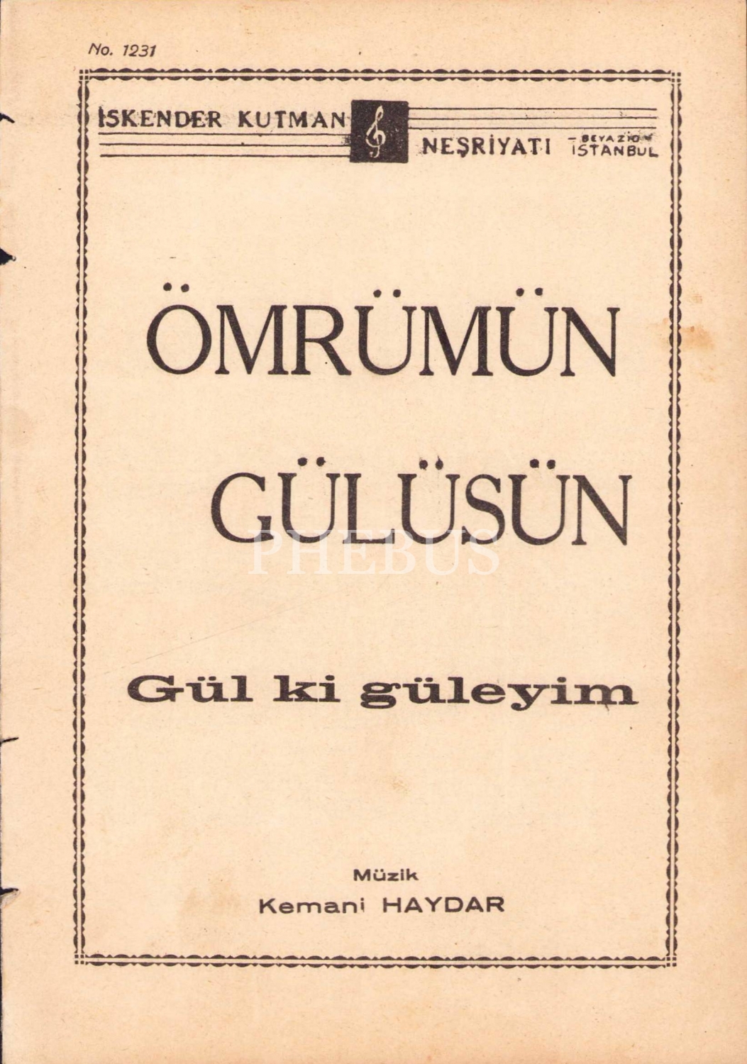 Nota: İskender Kutman Neşriyatı, Ömrümün Gülüsün - Gül ki güleyim, Kemani Haydar, 4 sayfa, 14x20 cm