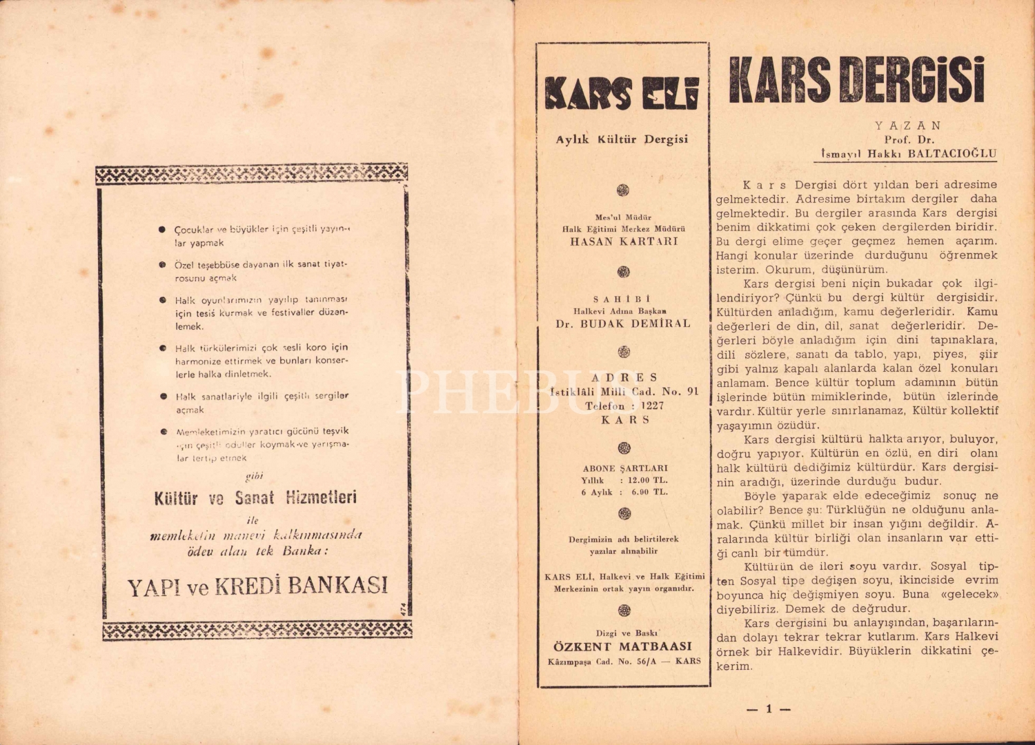 Kars Eli Aylık Kültür Dergisi, Temmuz 1968, Sayı: 48, 16 sayfa, 17x24 cm