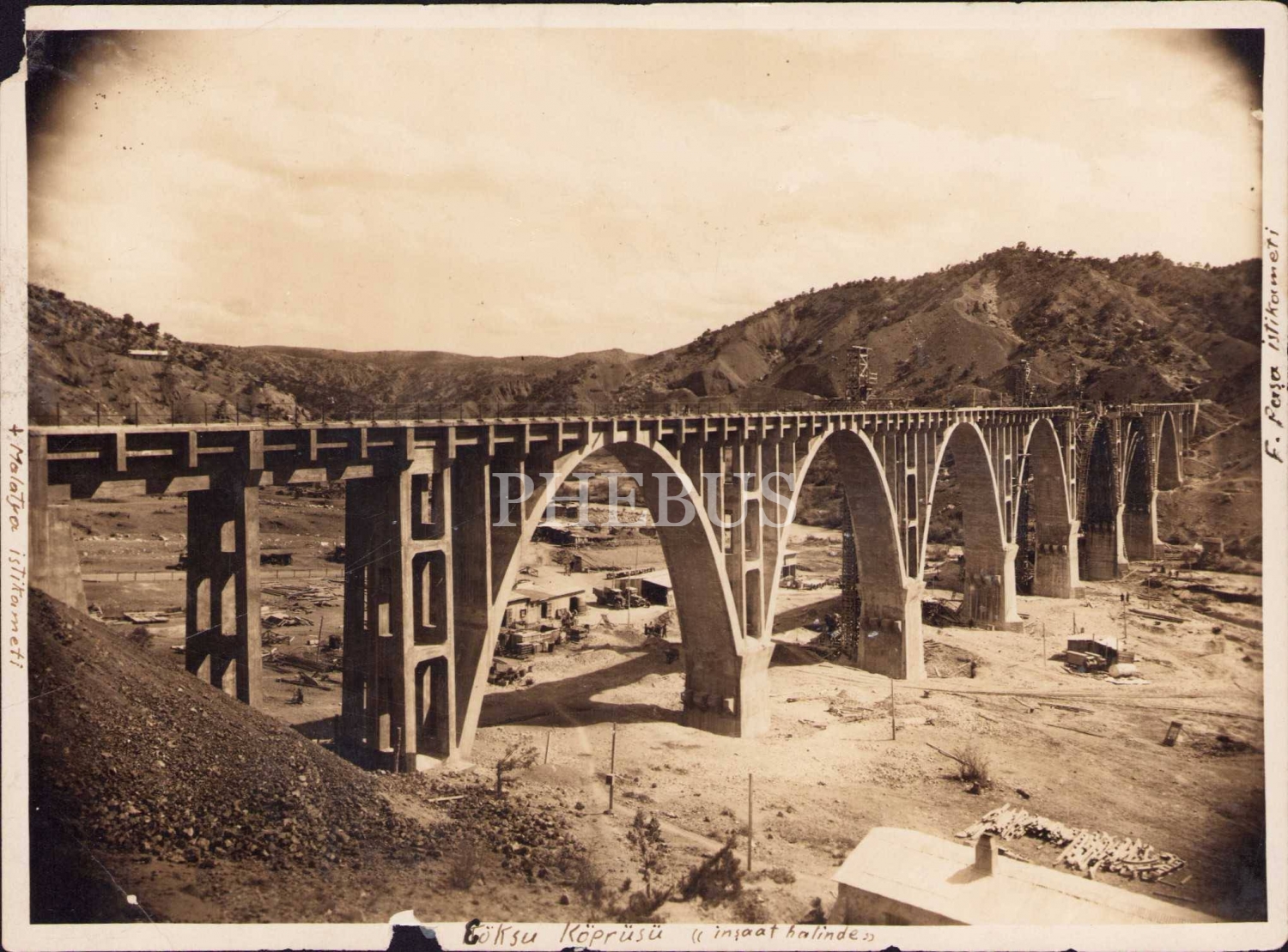 İnşaat halindeki Göksu Köprüsü'nü gösteren fotoğraf, 17x12 cm