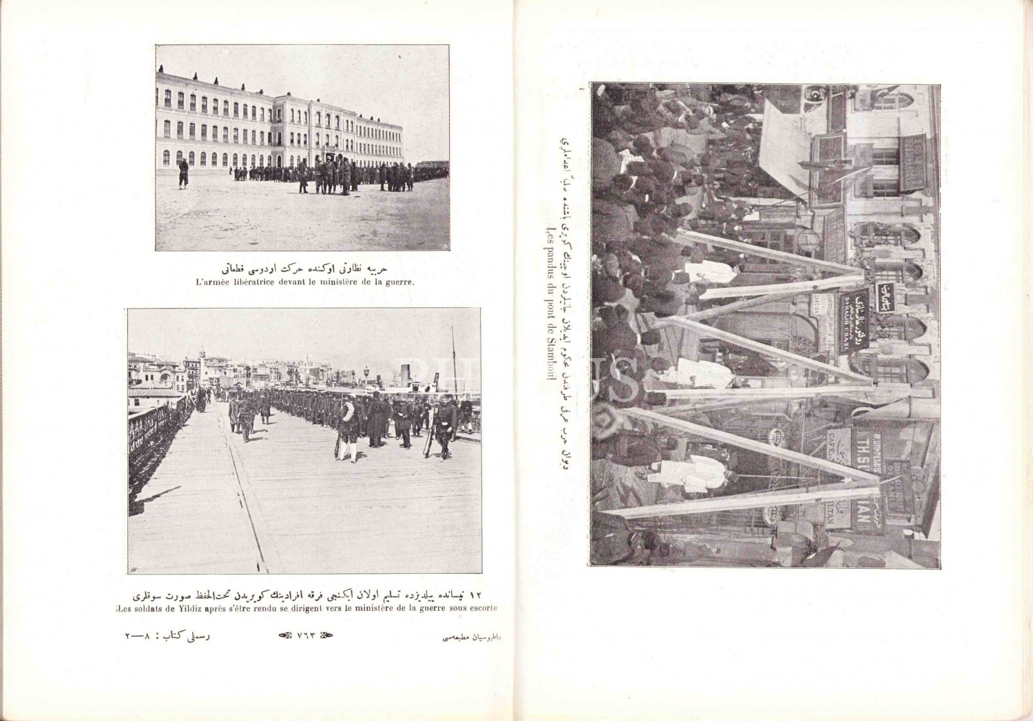 İç kapak "Hareket Ordusu kumandanı ve birinci, ikinci ve üçüncü ordu müfettişi umumiyesi Mahmut Şevket Paşa", "Fevkalade nefides kağıtlı nüshadır", Mecmuada "Devr-i sabıkta Mekteb-i Harbiyede Von der Goltz Paşaya verilen ziyafetin fotoğrafı Phebus Fotoğrafhanesi tarafından çekilmiştir. Sırtı haliyle, 97 sayfa, 16x24 cm