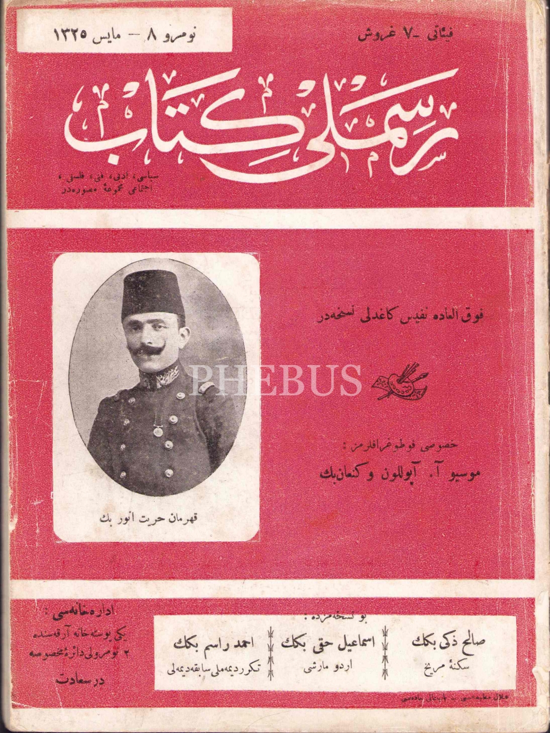Osmanlıca Resimli Kitap mecmuası, kapak [Kahraman Hürriyet Enver Bey] Enver Paşa, Hilal Matbaası, Dersaadet, 1325
