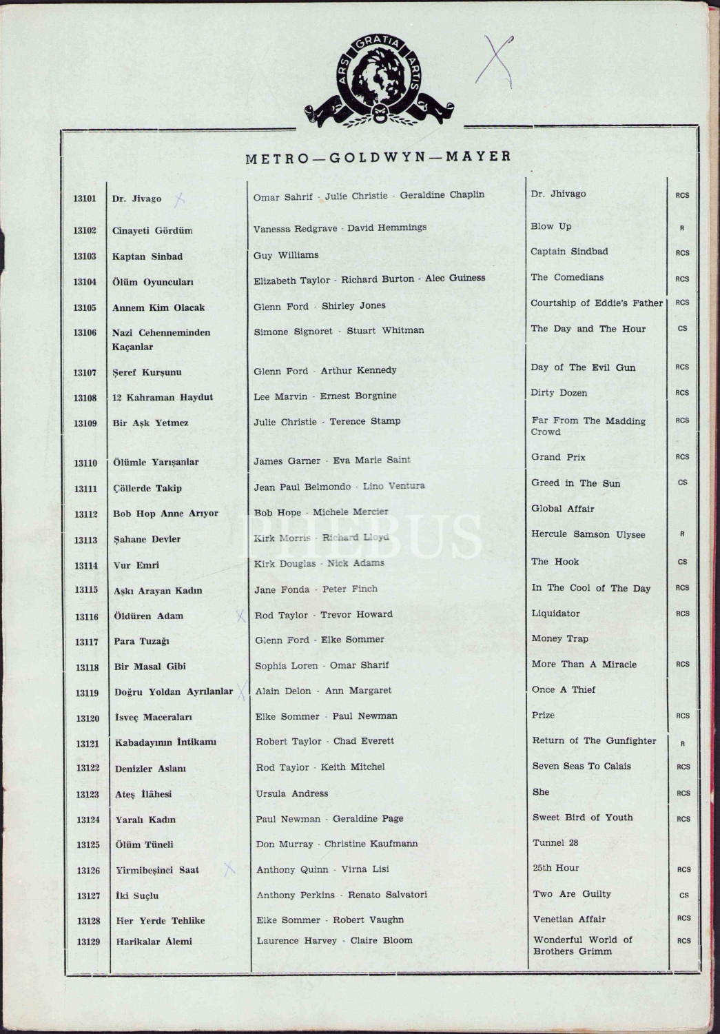 Fitaş Film 1968 - 1969 film listesi, 5 sayfa, 21x32 cm