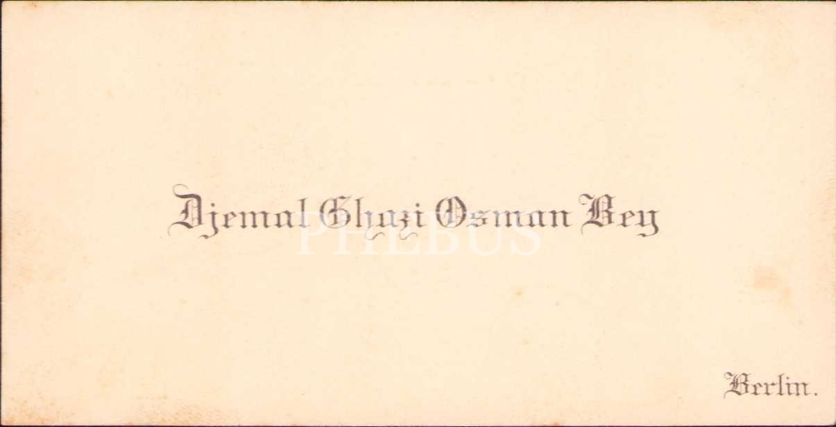 Fransızca kartvizit, Djemal Ghazi Osman Bey - Berlin, arkası Osmanlıca ithaflı, 9x5 cm