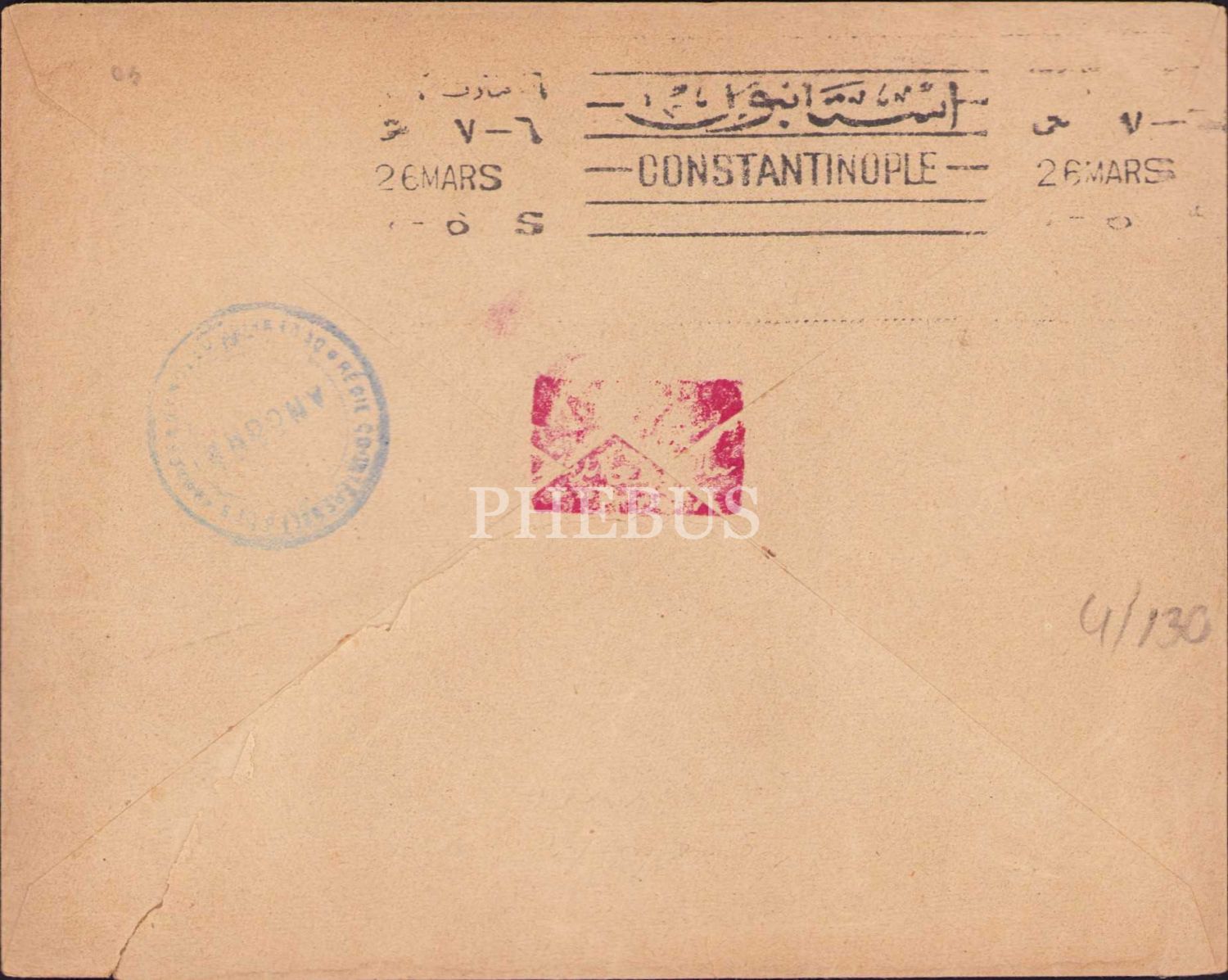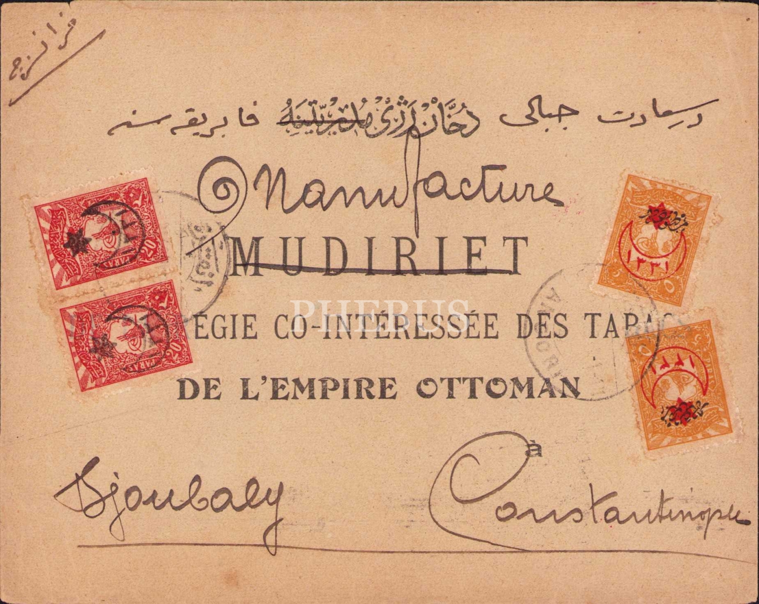 Osmanlı dönemi Constantinople damgalı, pullu, postadan geçmiş zarf