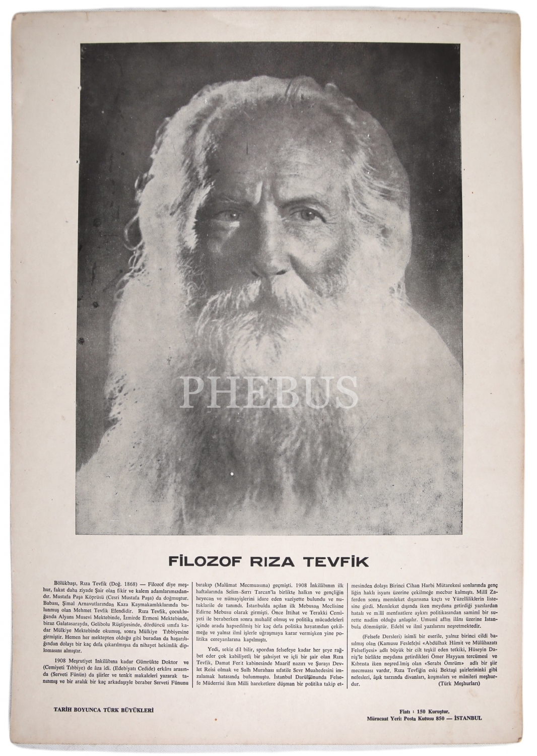 Tarih Boyunca Türk Büyükleri: Filozof Rıza Tevfik afiş, İstanbul baskı, 33x48 cm