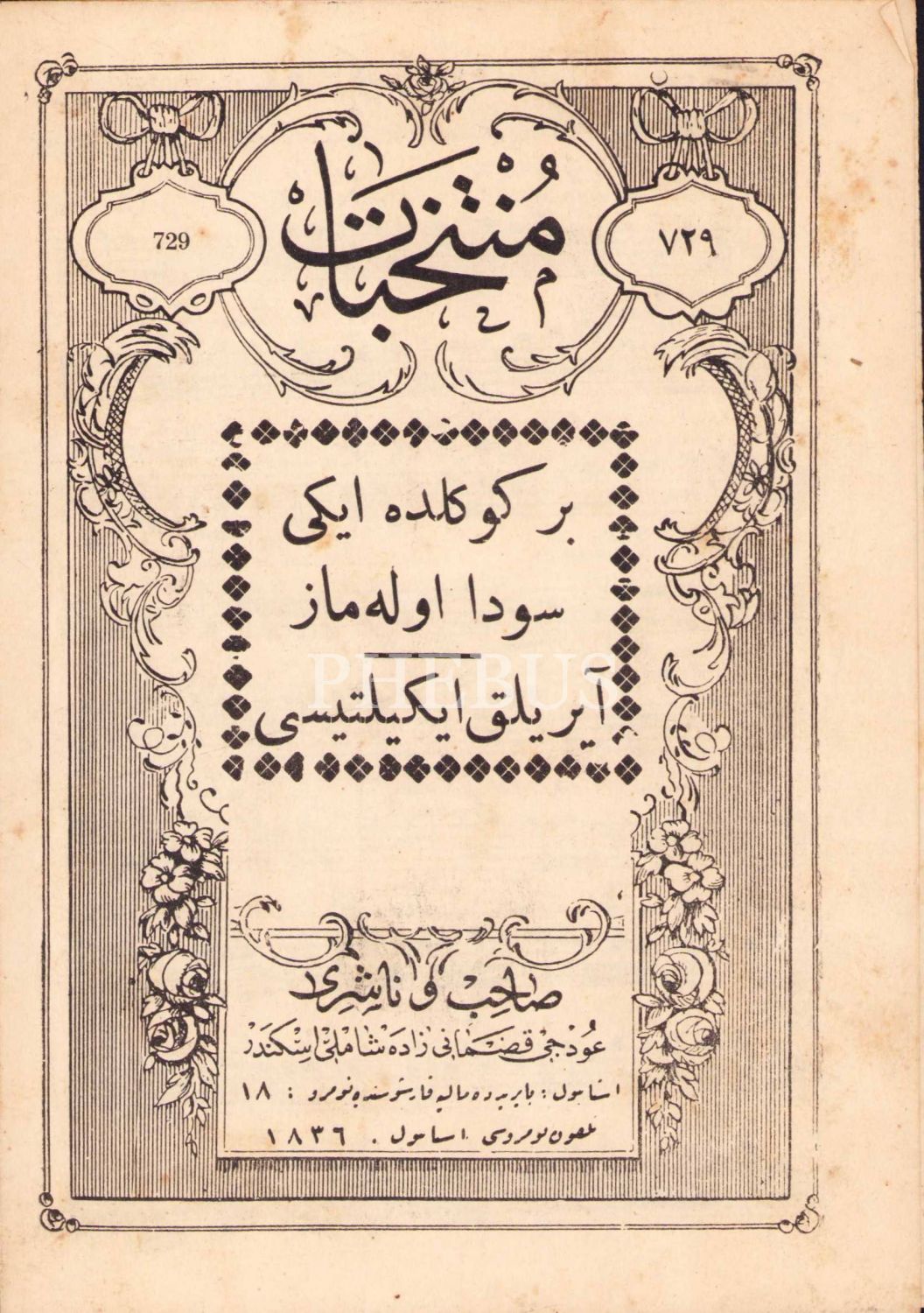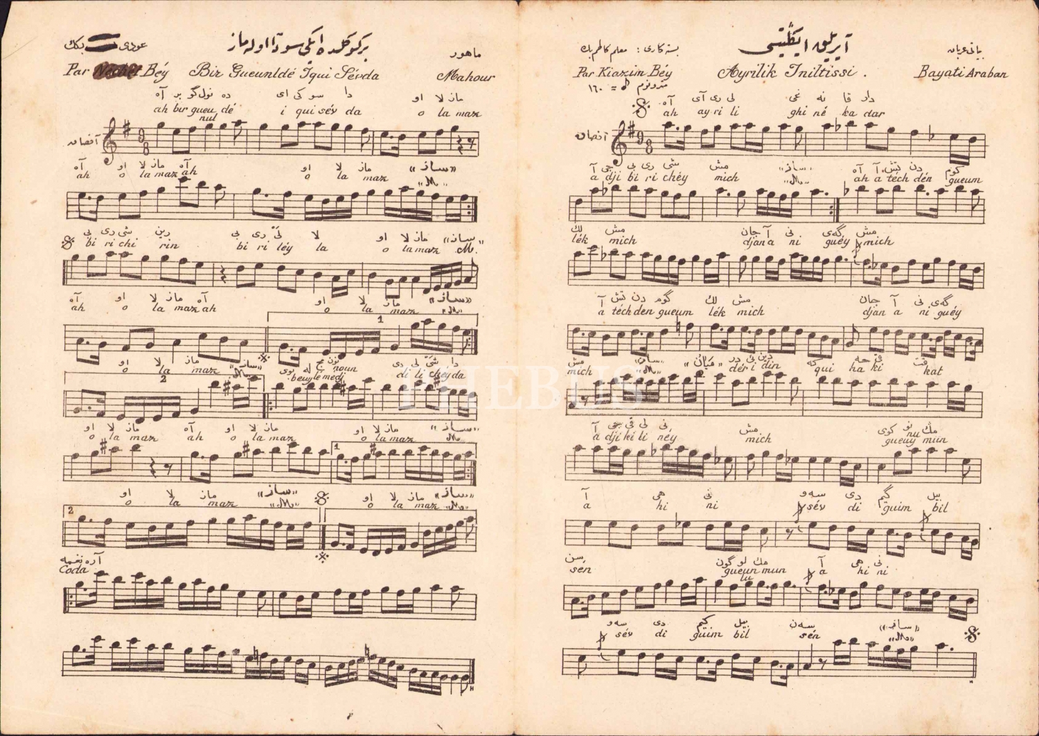 Osmanlıca nota, Müntehabat, Bir Gönülde İki Sevda Olamaz, Editör Şamlı İskender, 4 sayfa, 13x19 cm