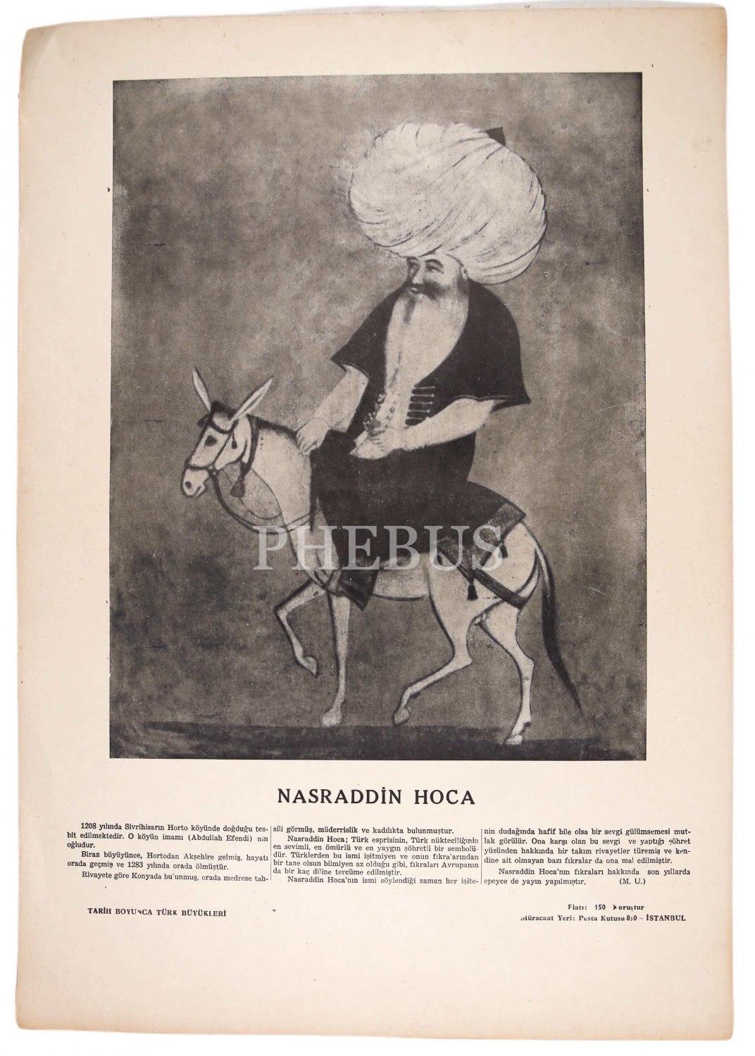 Tarih Boyunca Türk Büyükleri: Nasreddin Hoca afiş, İstanbul baskı, 33x48 cm