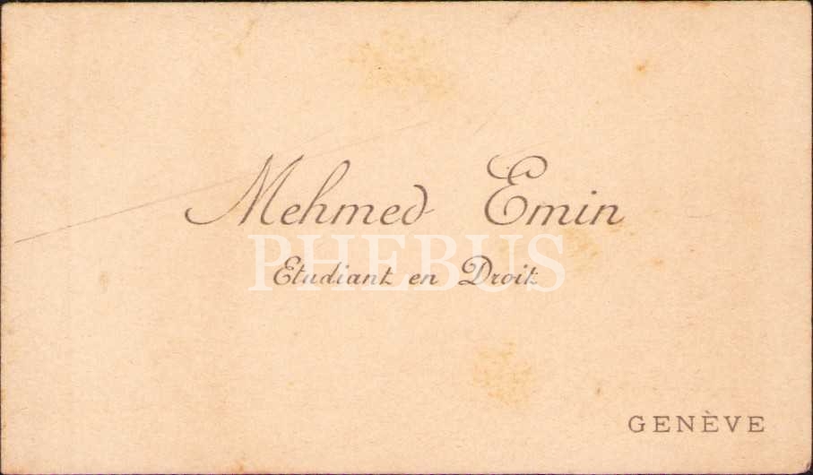 Fransızca kartvizit, Mehmed Emin, arkası Osmanlıca yazılı, 7x4 cm