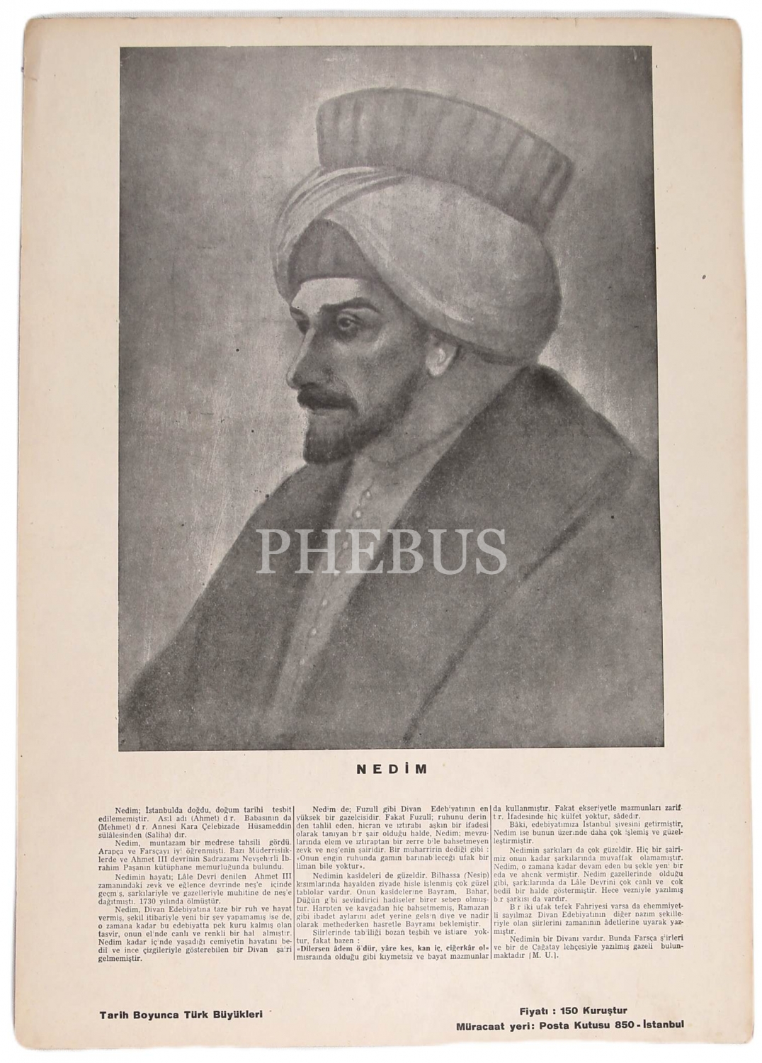 Tarih Boyunca Türk Büyükleri: Nedim afiş, İstanbul baskı, 33x48 cm