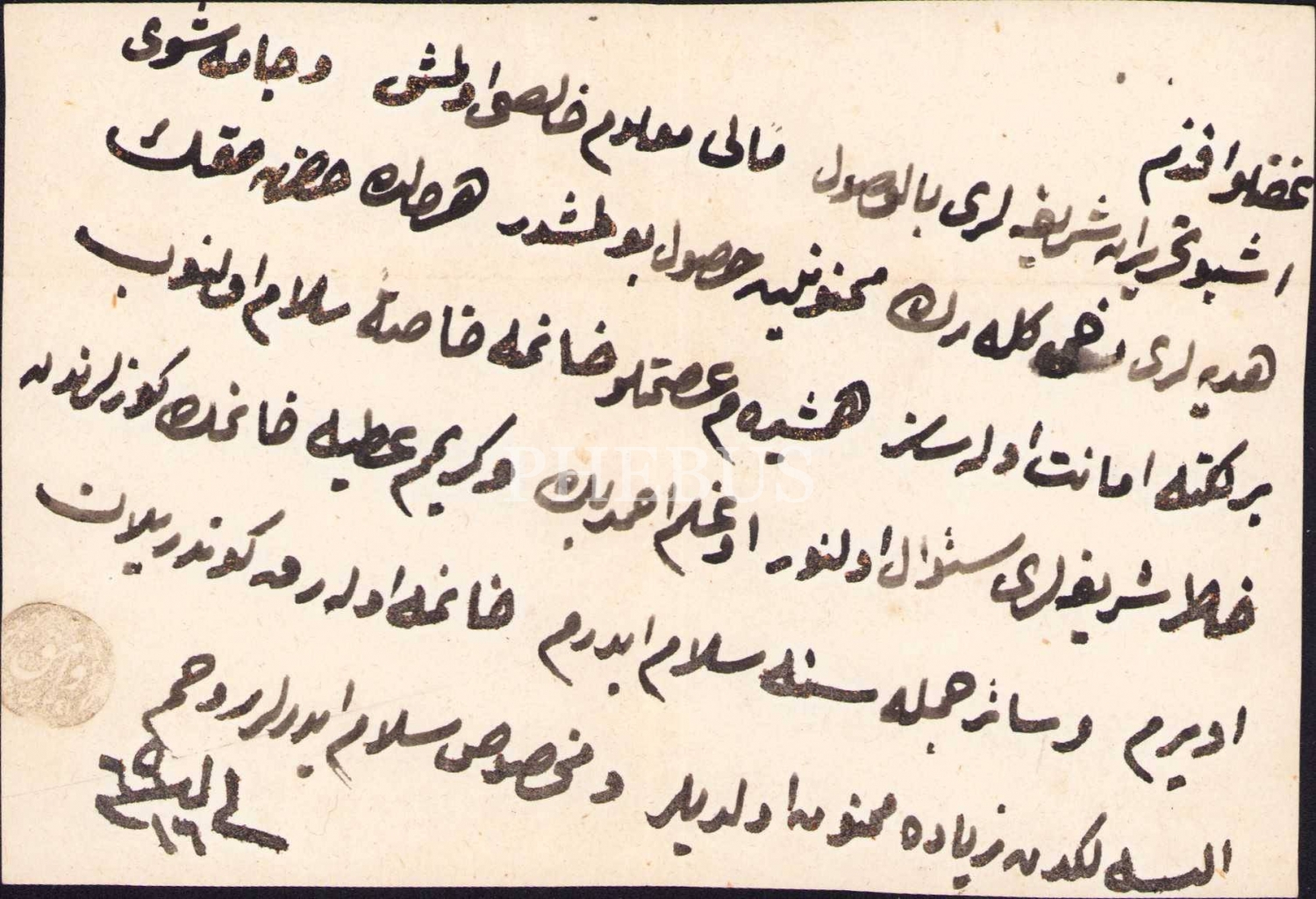 Vamık Paşa damgalı, 1269 tarihli Osmanlıca yazışma evrakı, 15x10 cm