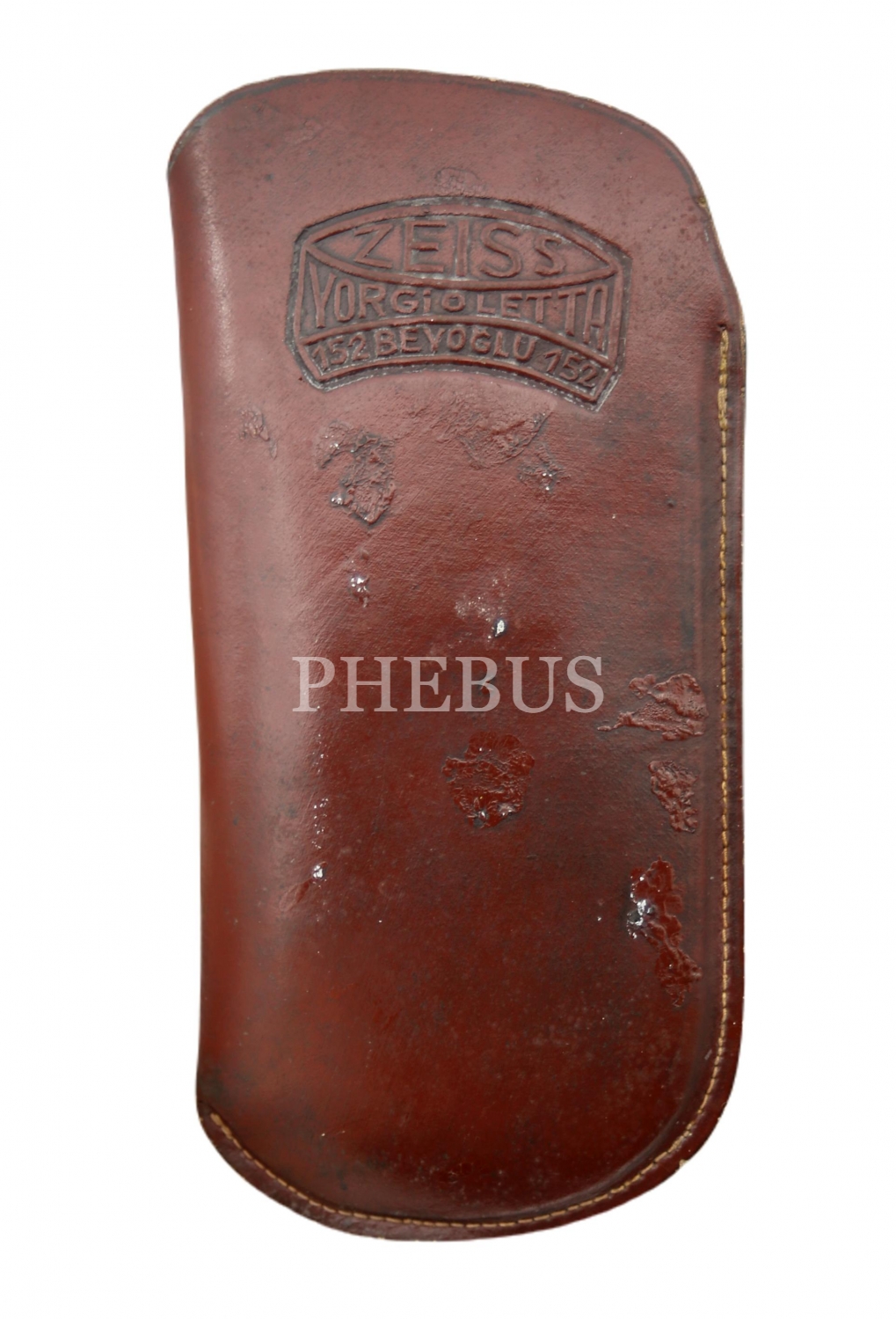 Zeiss Yorgi Oletta 152 Beyoğlu yazılı deri gözlük kılıfı, boş, 14x7 cm