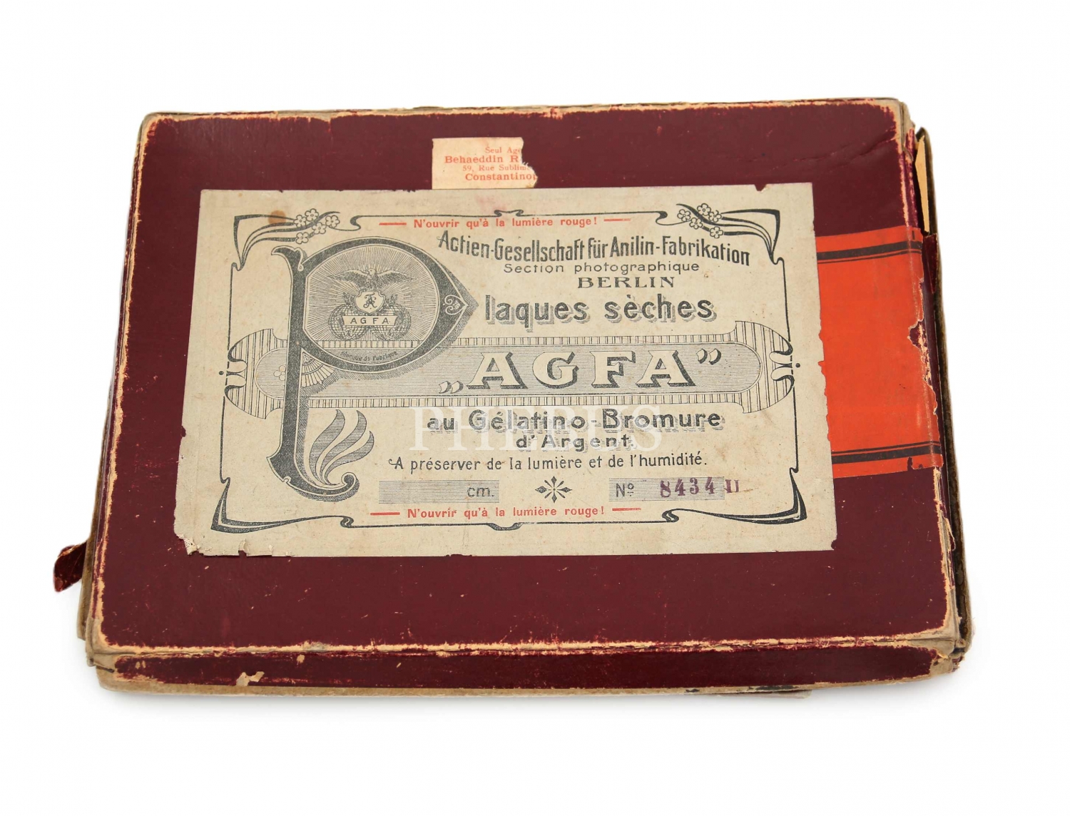Osmanlı Dönemi AGFA film reklamlı boş kutu, üstte Bahaettin Rahmi Bediz - Constantinople etiketi mevcut, 28x20x2 cm, haliyle