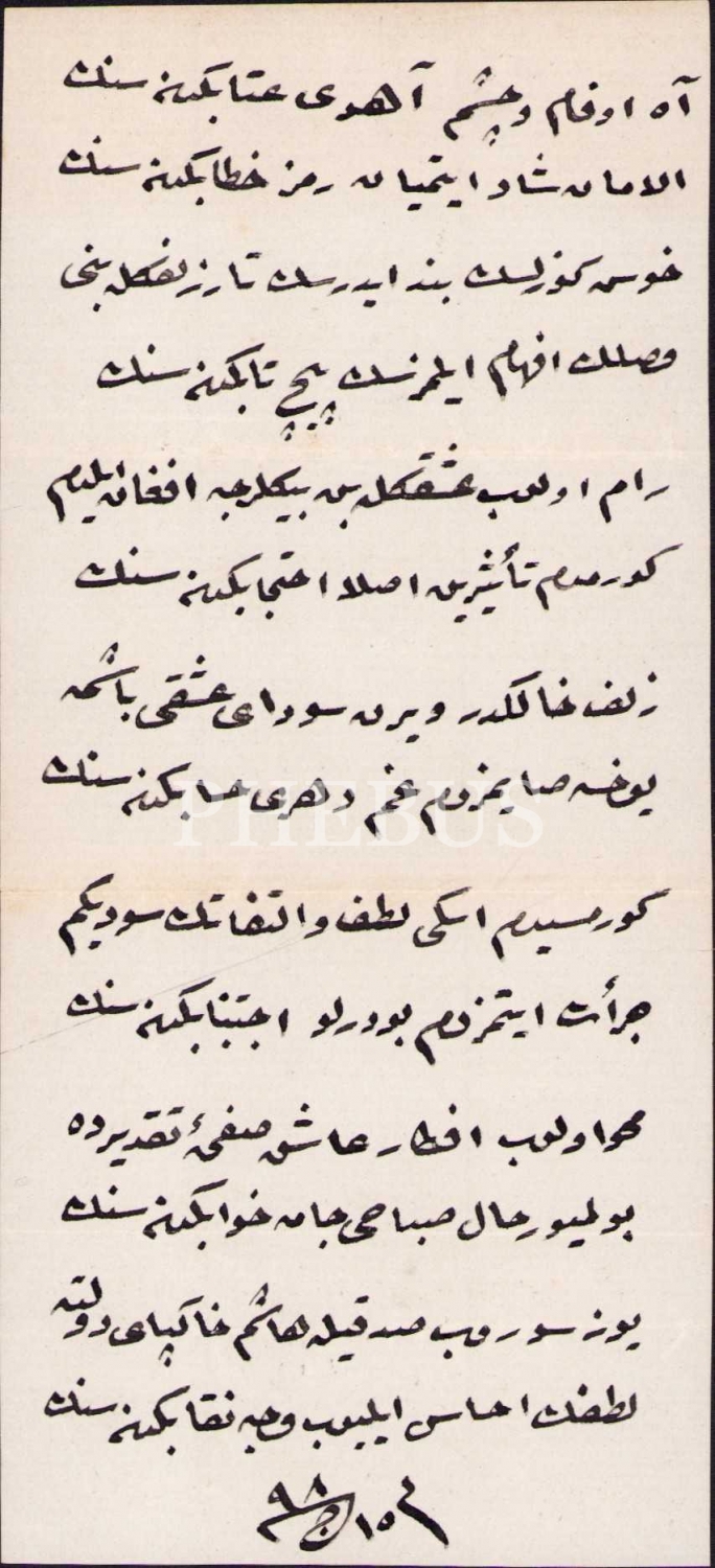 Sultan Abdülhamid Han'ın Maarif Nazırı Haşim Paşa'nın el yazısı ile Haşim mahlaslı şiir, 1298 tarihli, 7x15 cm