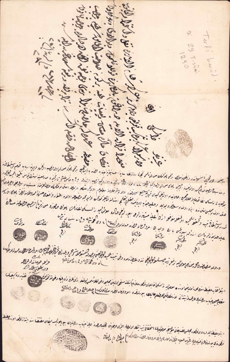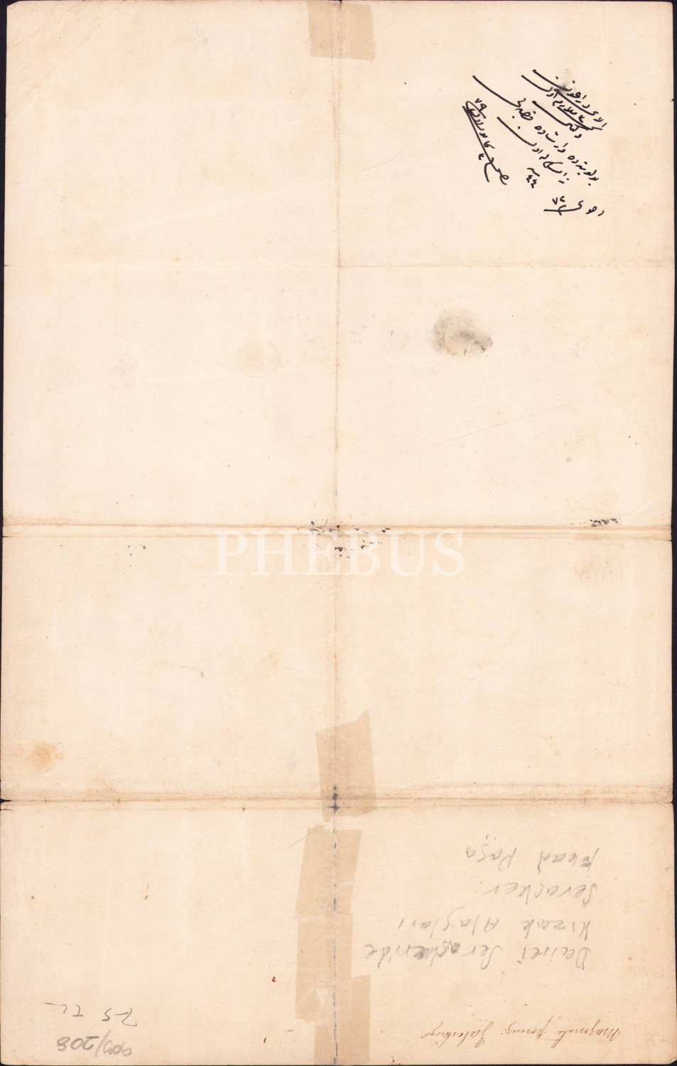 Serasker dairesi kızak alayı serasker Fuad Paşa'nın 1290 tarihli terfi beratı, tamirli, 21x32 cm