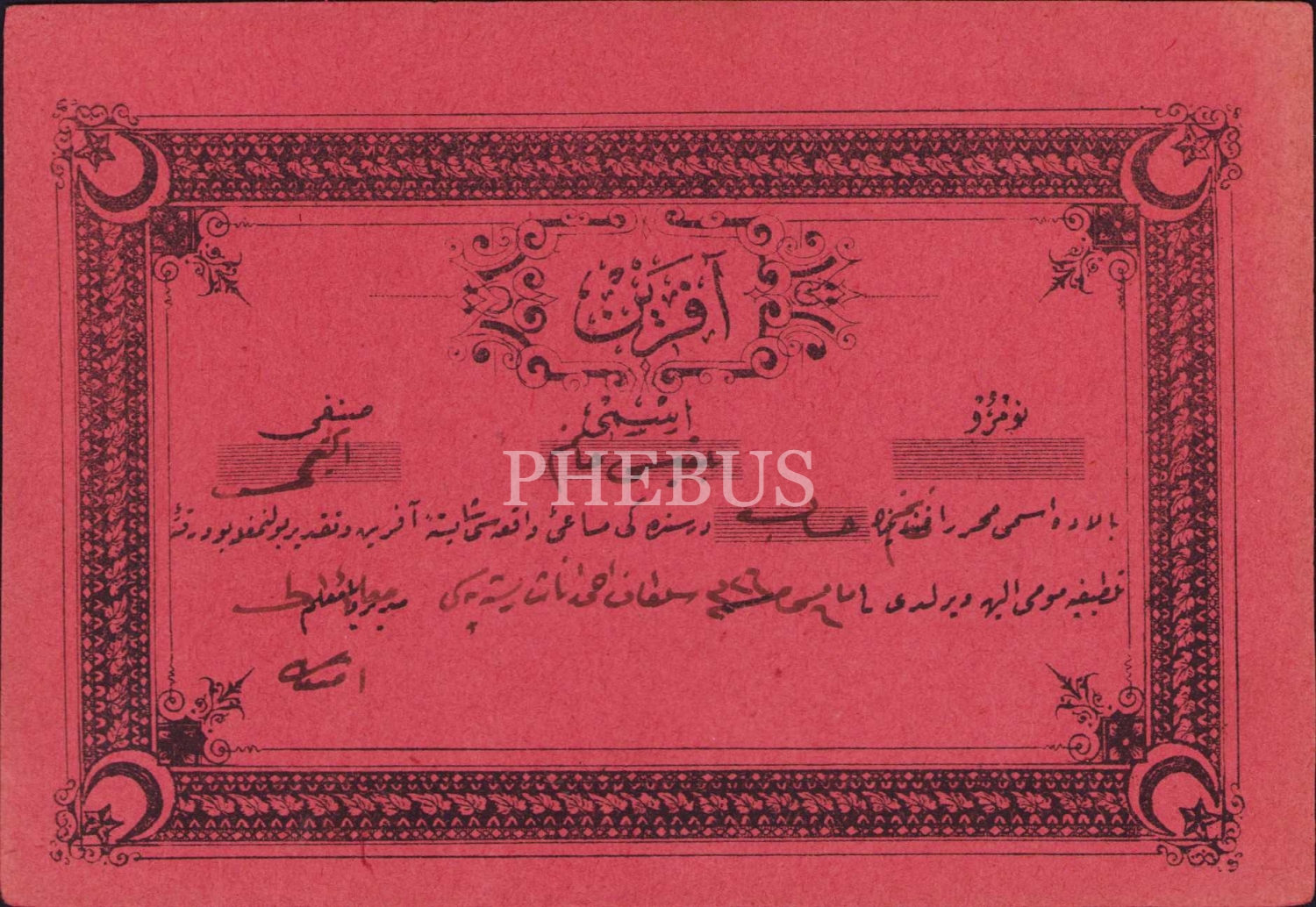 Osmanlıca Aferin, Sultanahmet İnas Rüşdiyesi, 1326, 14x10 cm
