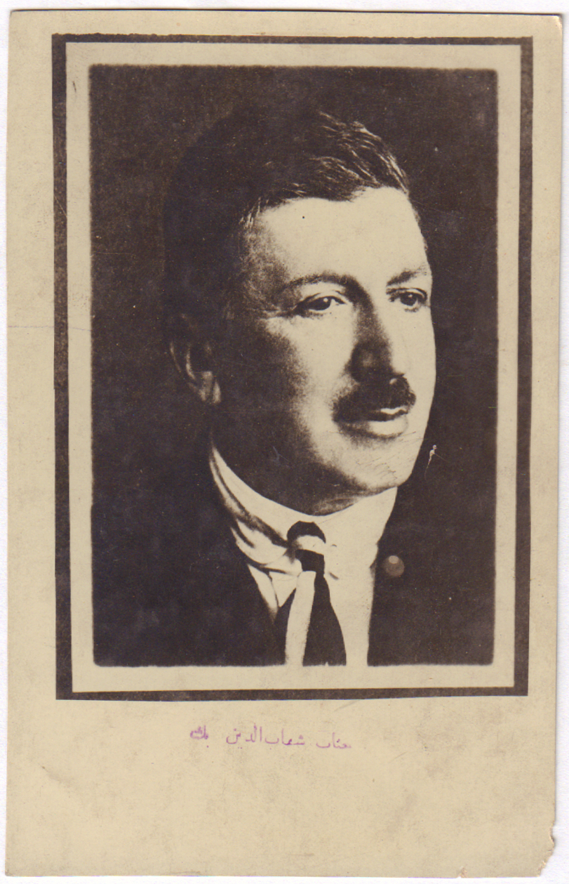 Portre üzerinde Osmanlıca "Cenap Şahabettin Bey" yazılı. Ebat: 14x9 cm