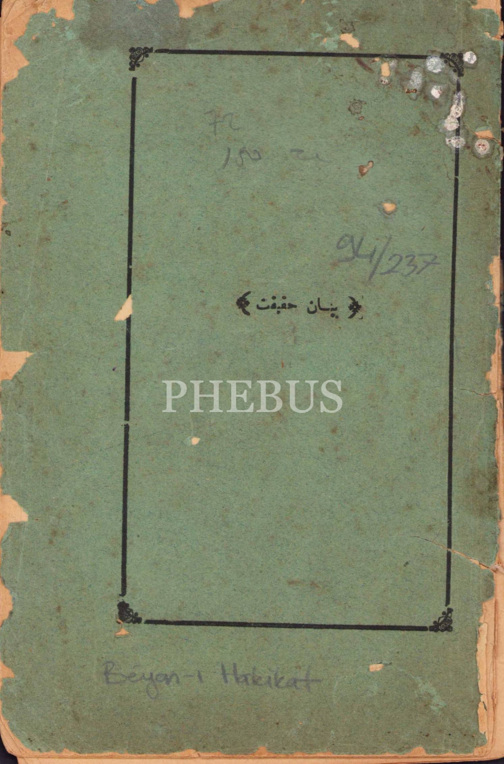 Osmanlıca Beyan-ı Hakikat, Matbaa-i Amire, 1293, kapak, sırt haliyle, 70 sayfa, 12x18 cm
