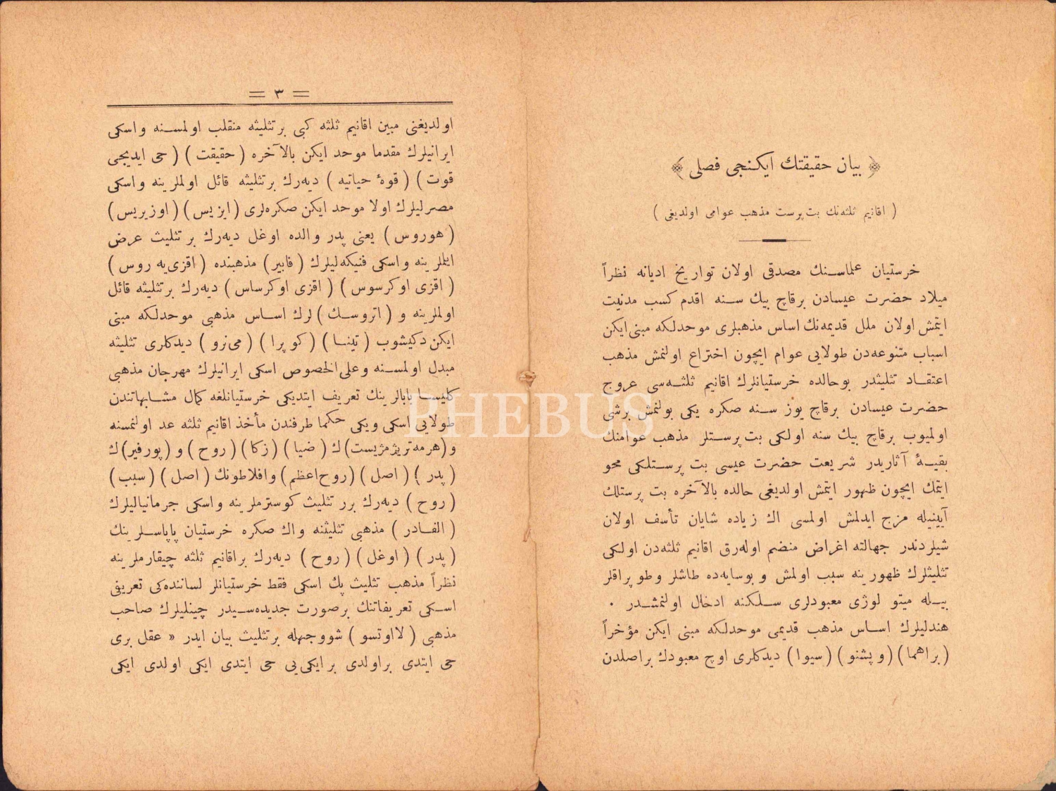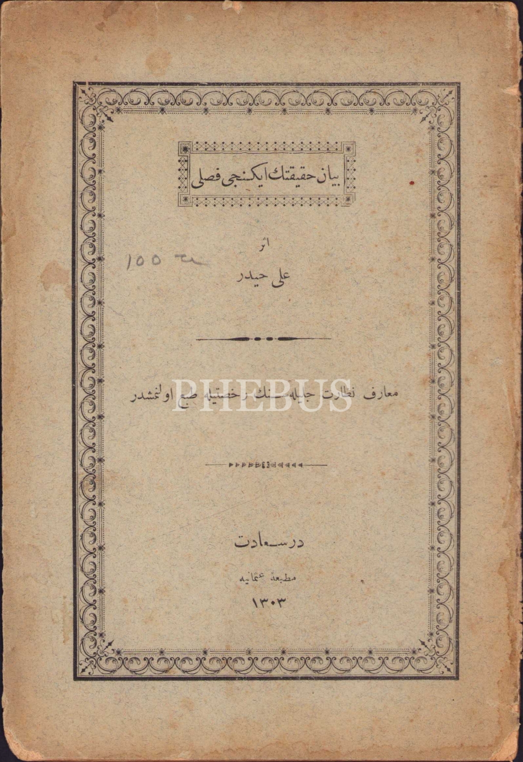 Osmanlıca Beyan-ı Hakikatin ikinci faslı, Ali Haydar, Dersaadet, Matbaa-i Osmani, 1303, sırtı haliyle, 23 sayfa, 13x19 cm