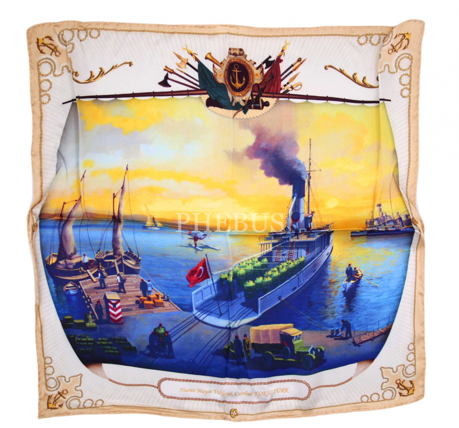 Deniz Müzesi Nusret Mayın Yükleme İpek Mendil, 26x20 cm