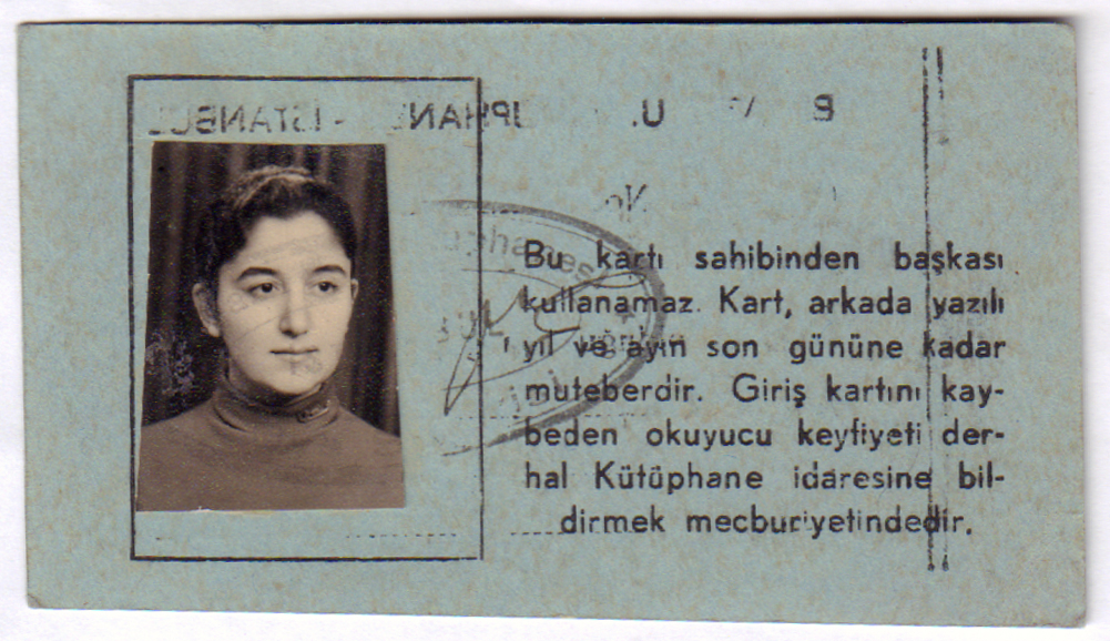 Kimlik- Beyazıt Umum Kütüphanesi kimlik kartı.1950. Ebat: 11x6 cm.